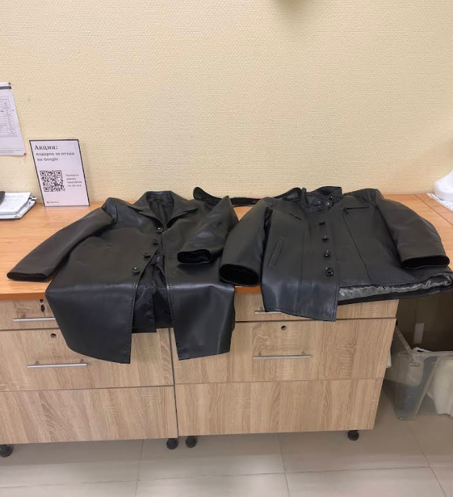 Наконец -то нашли магазин , где смогли найти нормальные кожаные куртки на мужа . У них свой цех по пошиву , теперь только сюда за верхней одеждой