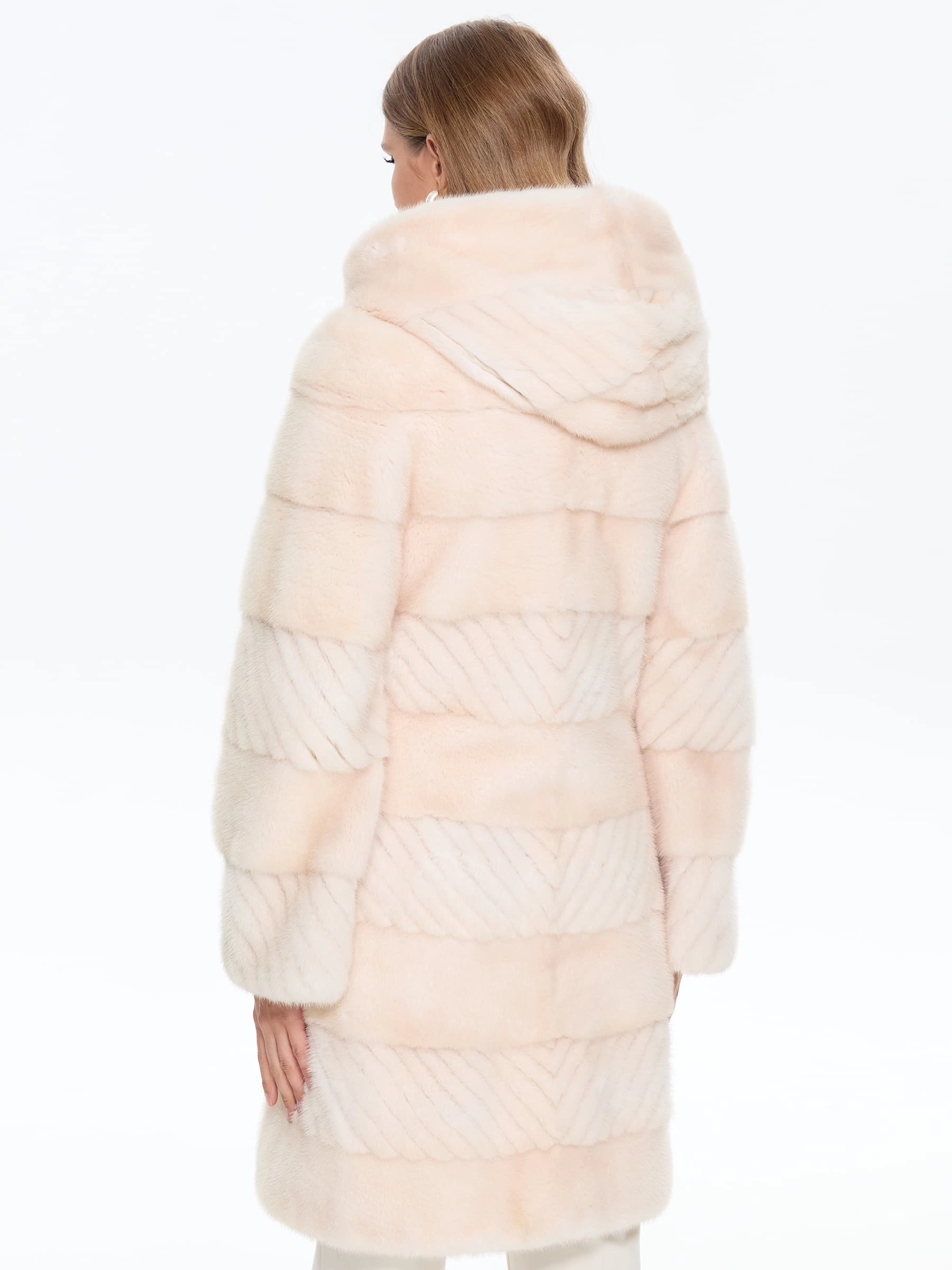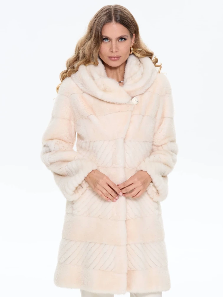 Бежевая женская норковая шуба BRASCHI EGM 012, размер 42, артикул 34400