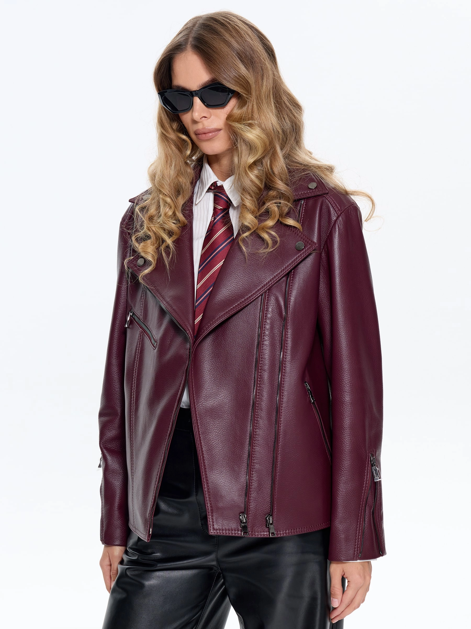 Бордовая кожаная женская куртка косуха 3047, размер 46, артикул 24770
