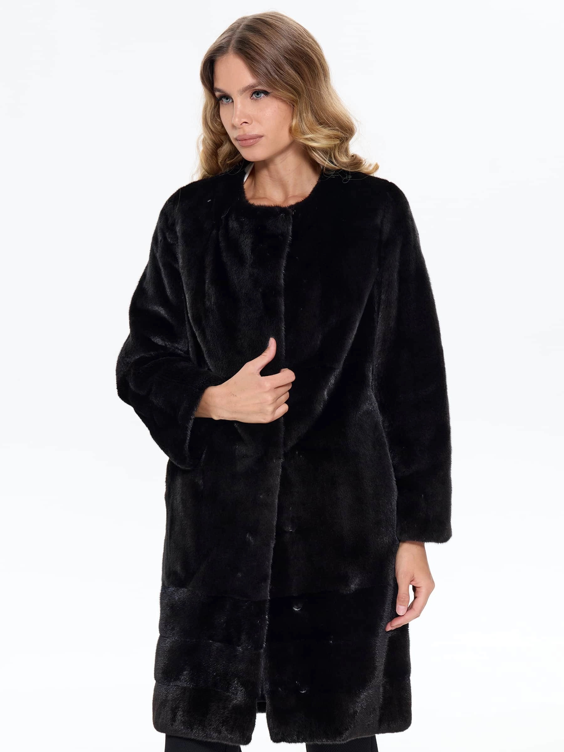 Черная женская шуба из меха норки BRASCHI NJ 13, размер 42, артикул 34370