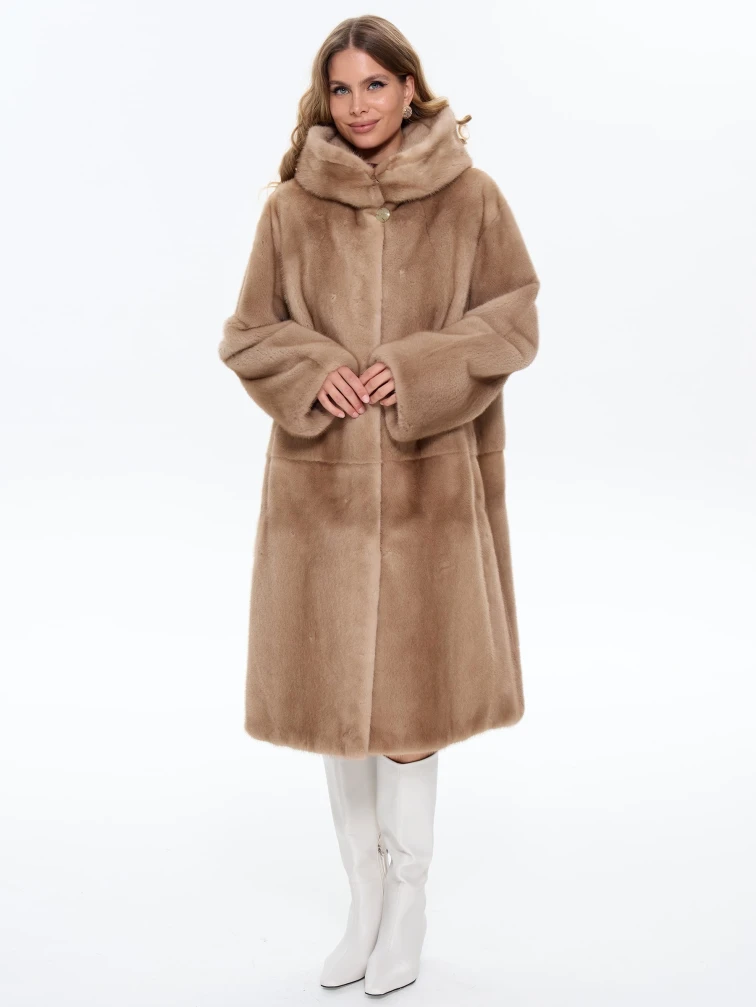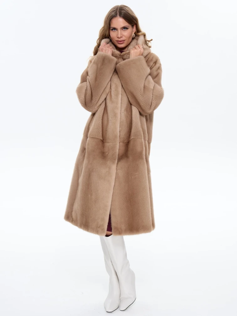 Длинная норковая женская шуба с капюшоном Жанет, пастельная, размер 52, артикул 65170