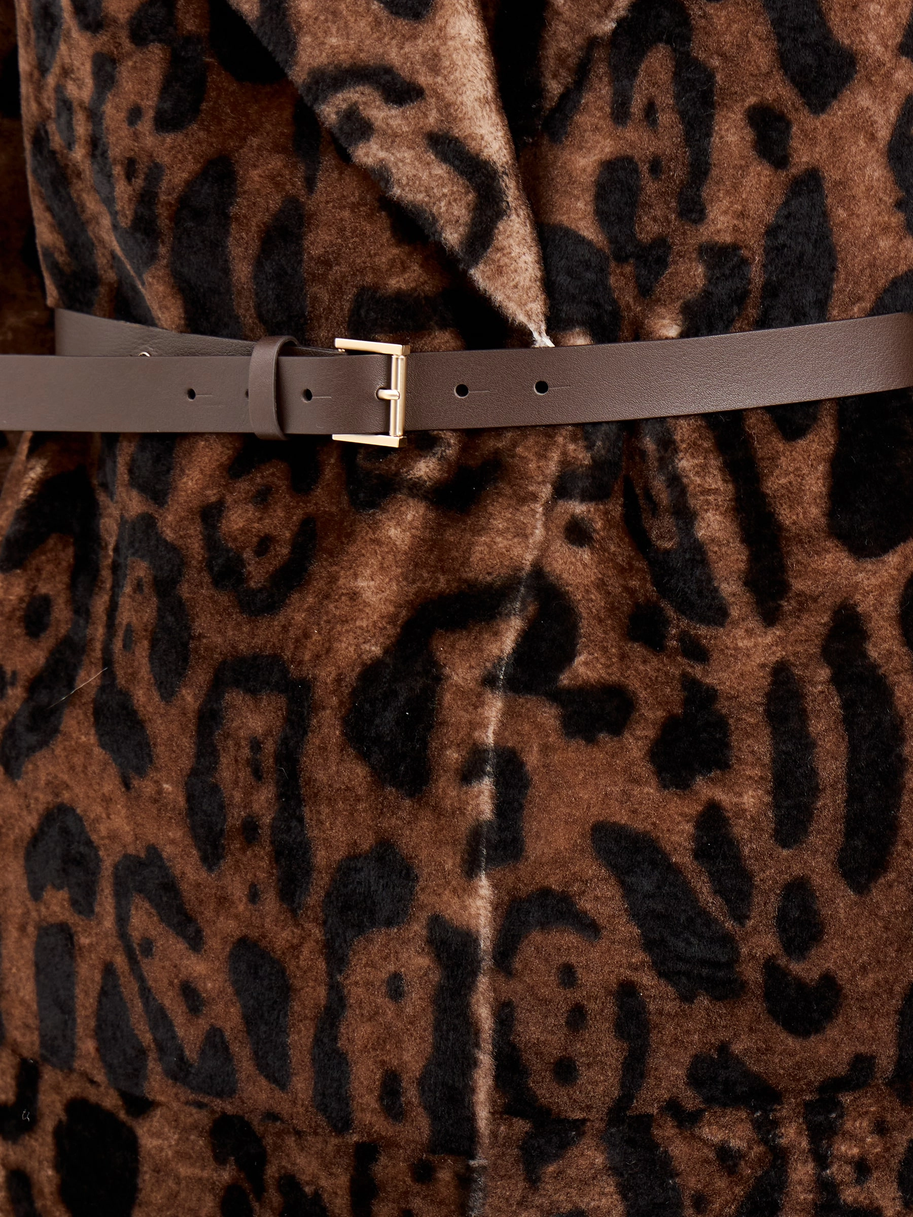 Длинная дубленка из натуральной овчины с леопардовым принтом и роскошным воротником из норки — это воплощение элегантности и комфорта. Свободный силуэт и спущенный рукав создают непринужденный образ, который легко дополнить поясом для акцента на талии. Стилисты рекомендуют носить эту модель с однотонными базовыми вещами — например, с черными брюками-клеш и водолазкой, чтобы позволить принту и текстуре норки стать главным акцентом образа.