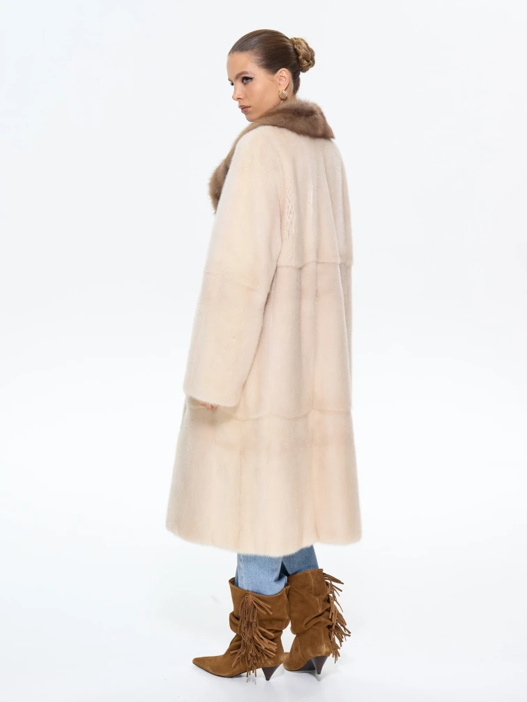Длинная женская шуба из меха норки Лола, жемчужная, размер 54, артикул 65630