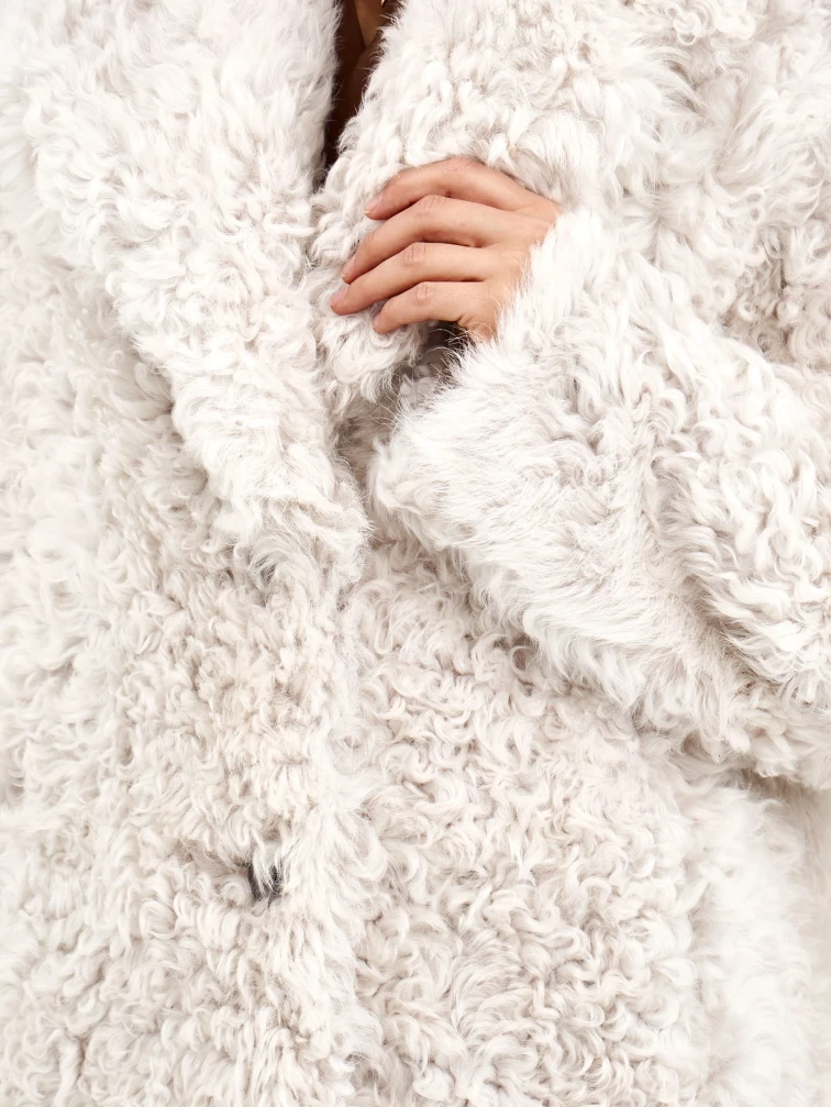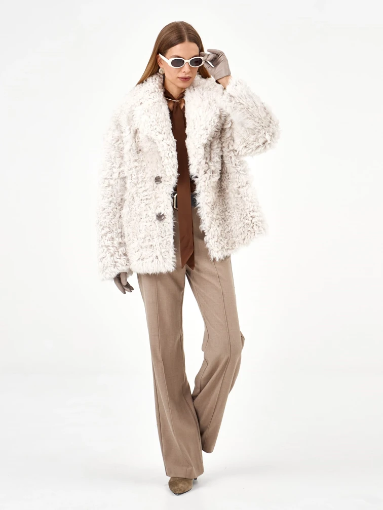 Короткая дубленка из натуральной овчины «Тиградо» — это идеальное сочетание стиля, тепла и комфорта. Модель премиум-класса восхищает своим гипнотизирующим крупным завитком, который создает неповторимую игру текстуры. Невероятно легкая и одновременно исключительно теплая, она станет вашей любимой вещью в холодное время года. Свободный силуэт и отложной воротник подчеркивают непринужденную элегантность. Стилисты рекомендуют носить эту дубленку с кожаными брюками, объемными свитерами и джинсами-скинни, чтобы создать образ с ноткой дерзости и утонченности.