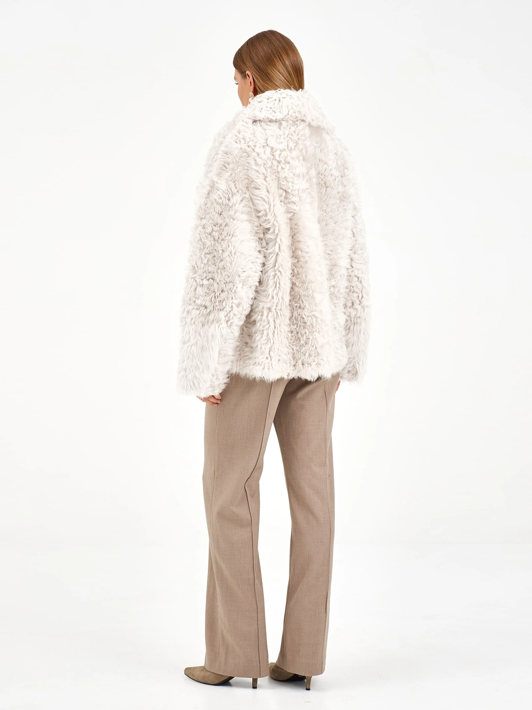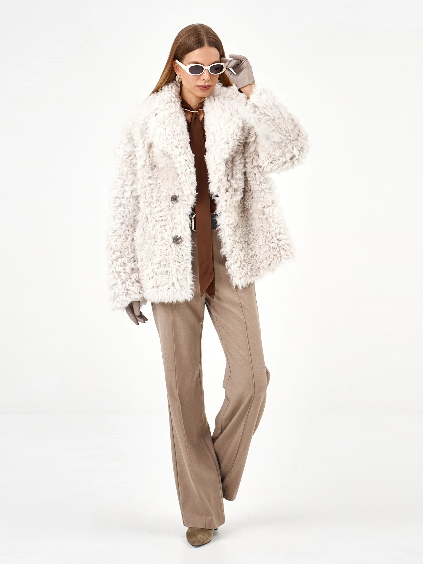 Товар короткая женская дубленка из тиградо 2081, белая, размер 42, артикул 65040 выполнен из овчина "тиградо" с застежкой пуговицы. Рассчитан на сезон: зима. Длина изделия 70 см, силуэт свободный.