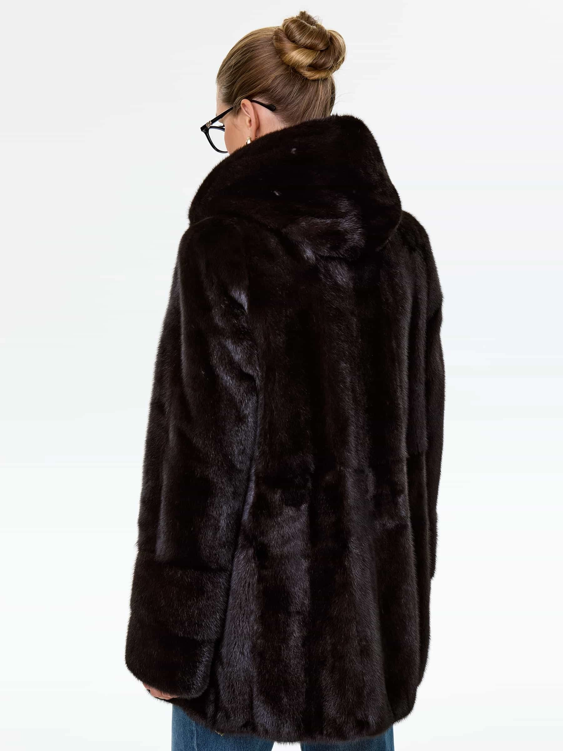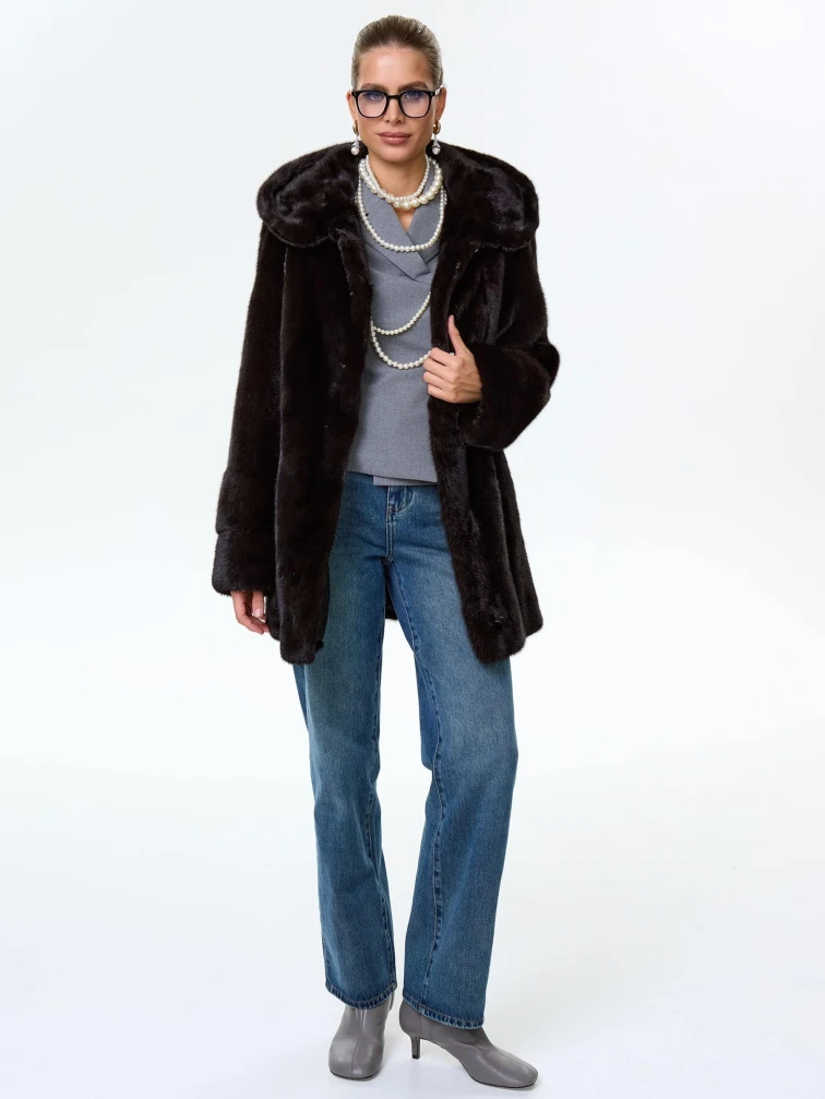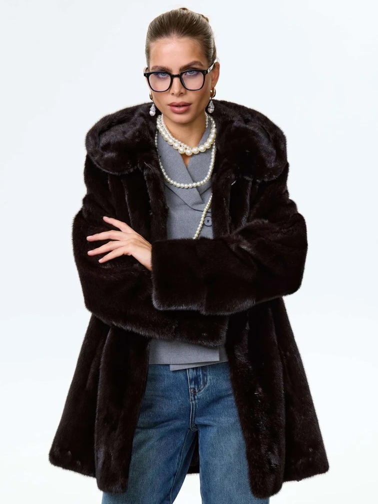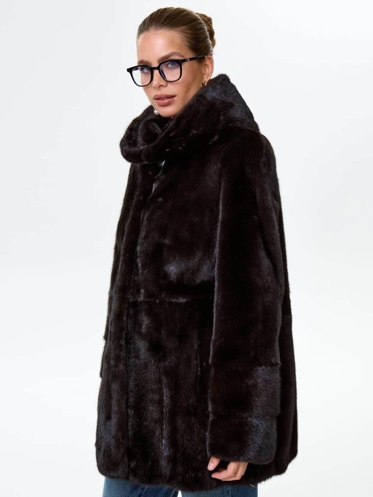 Короткая женская норковая шуба автоледи с капюшоном Елена(к), черная, размер 50, артикул 64540