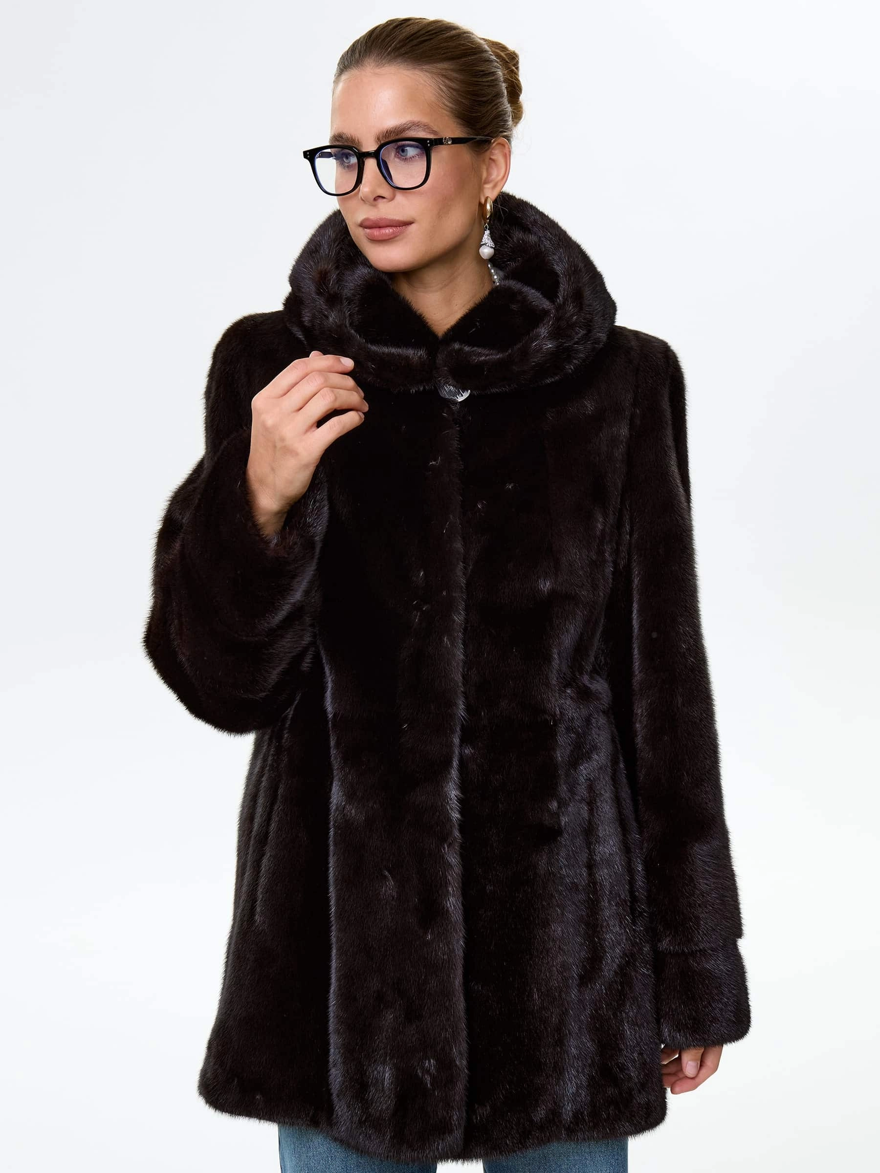 Товар короткая женская норковая шуба автоледи с капюшоном елена(к), черная, размер 50, артикул 64540 выполнен из норка с застежкой клипсы. Рассчитан на сезон: зима. Длина изделия 80 см, силуэт прямой.