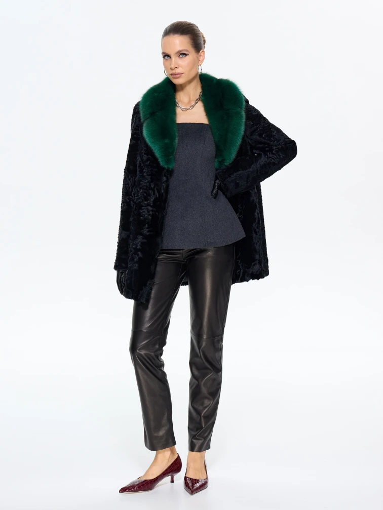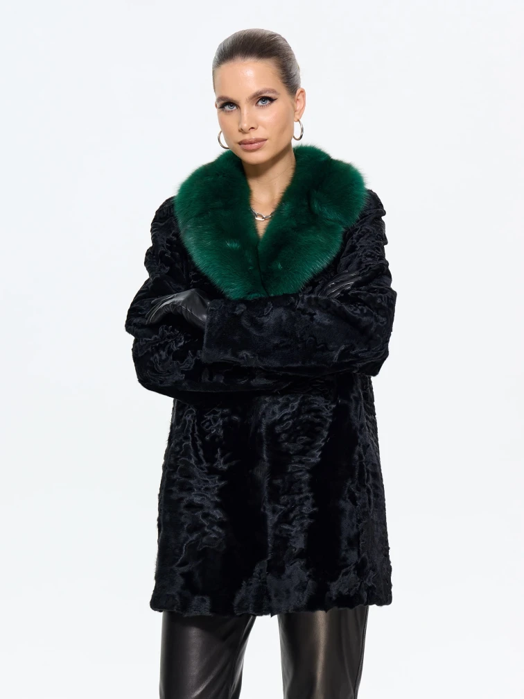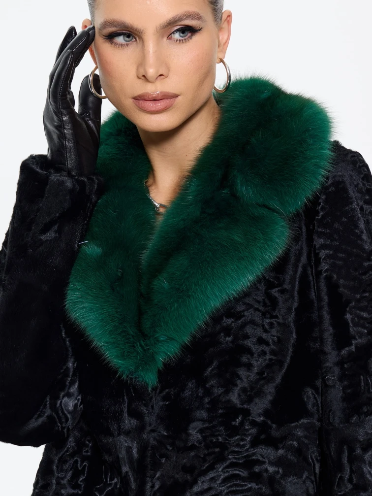Шуба из меха каракульчи премиум-класса с элегантным английским воротником. Классический прямой силуэт длиной 80 см подчеркивает стройность и воплощает утонченный шарм. Модель с втачными рукавами и застежкой-клипсами легко дополняется аксессуарами. Стилисты рекомендуют носить эту шубу с кожаными перчатками, объемной сумкой и сапогами-челси для повседневного образа или с платьем-футляром и жемчугом для вечернего выхода. Это идеальный вариант для ценительниц вечной классики и безупречного стиля.