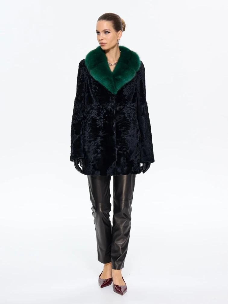 Товар короткая женская шуба из меха каракульчи ирэн, черная, размер 48, артикул 65550 выполнен из мех каракульчи с застежкой клипсы. Рассчитан на сезон: весна-осень. Длина изделия 80 см, силуэт прямой.
