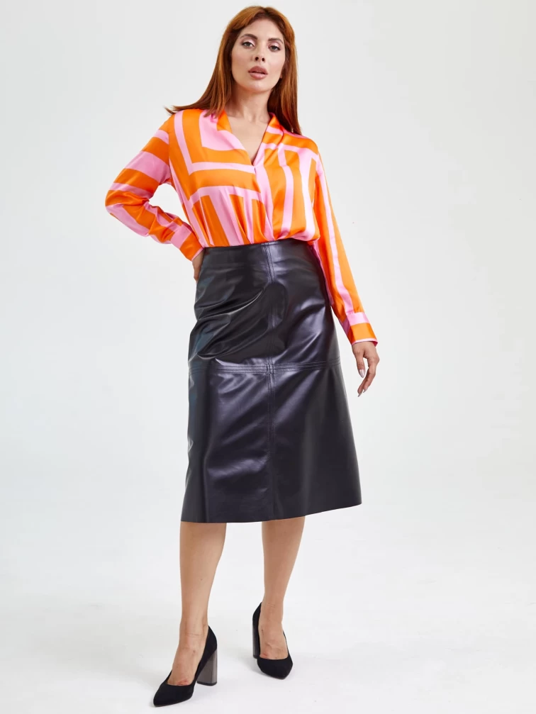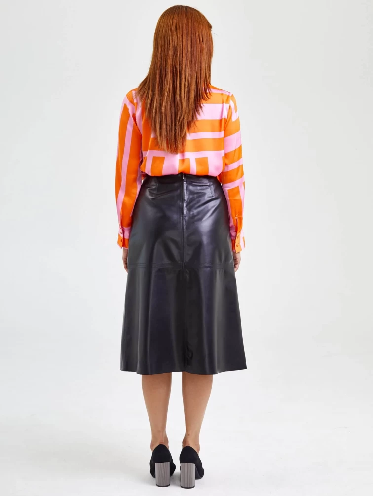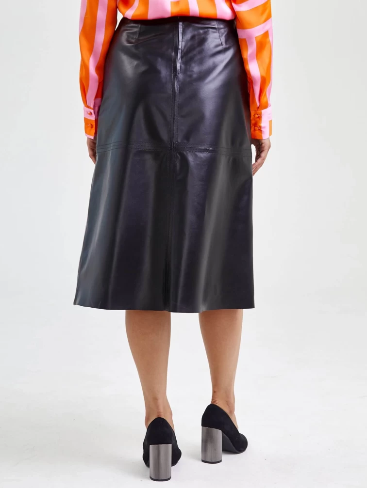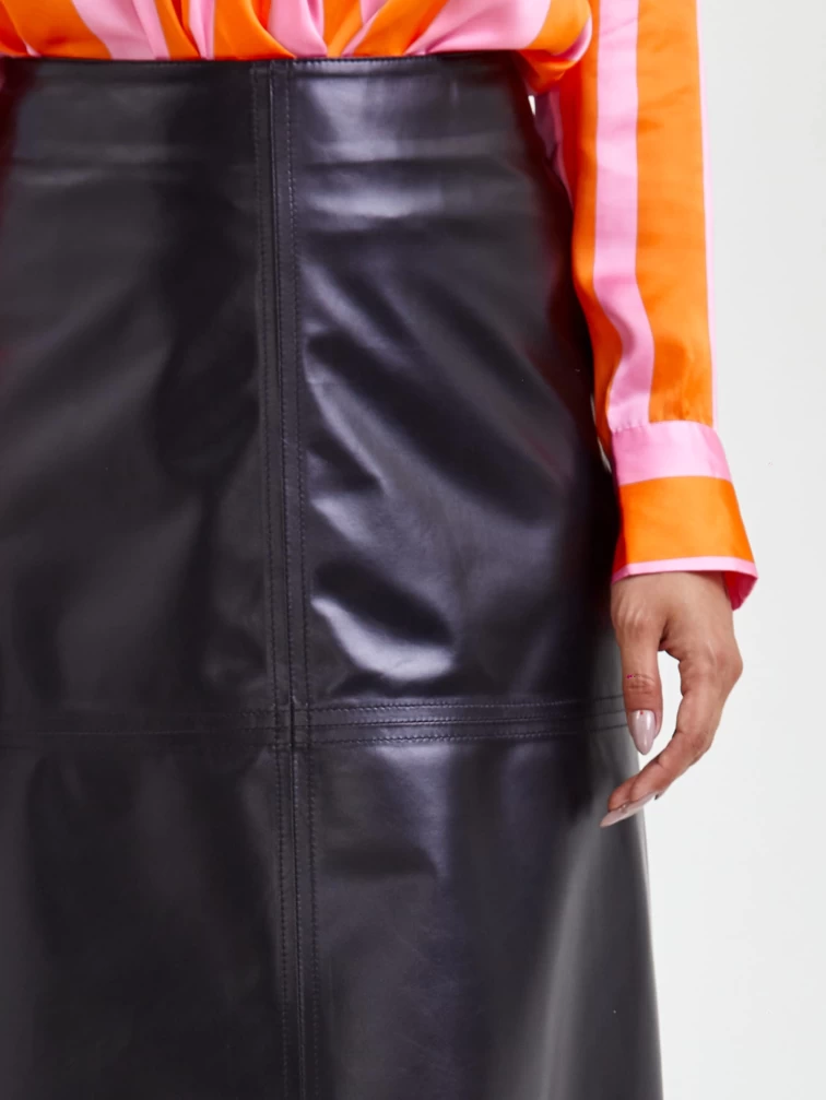 Кожаная юбка миди 09, черная, размер 46, артикул 85560