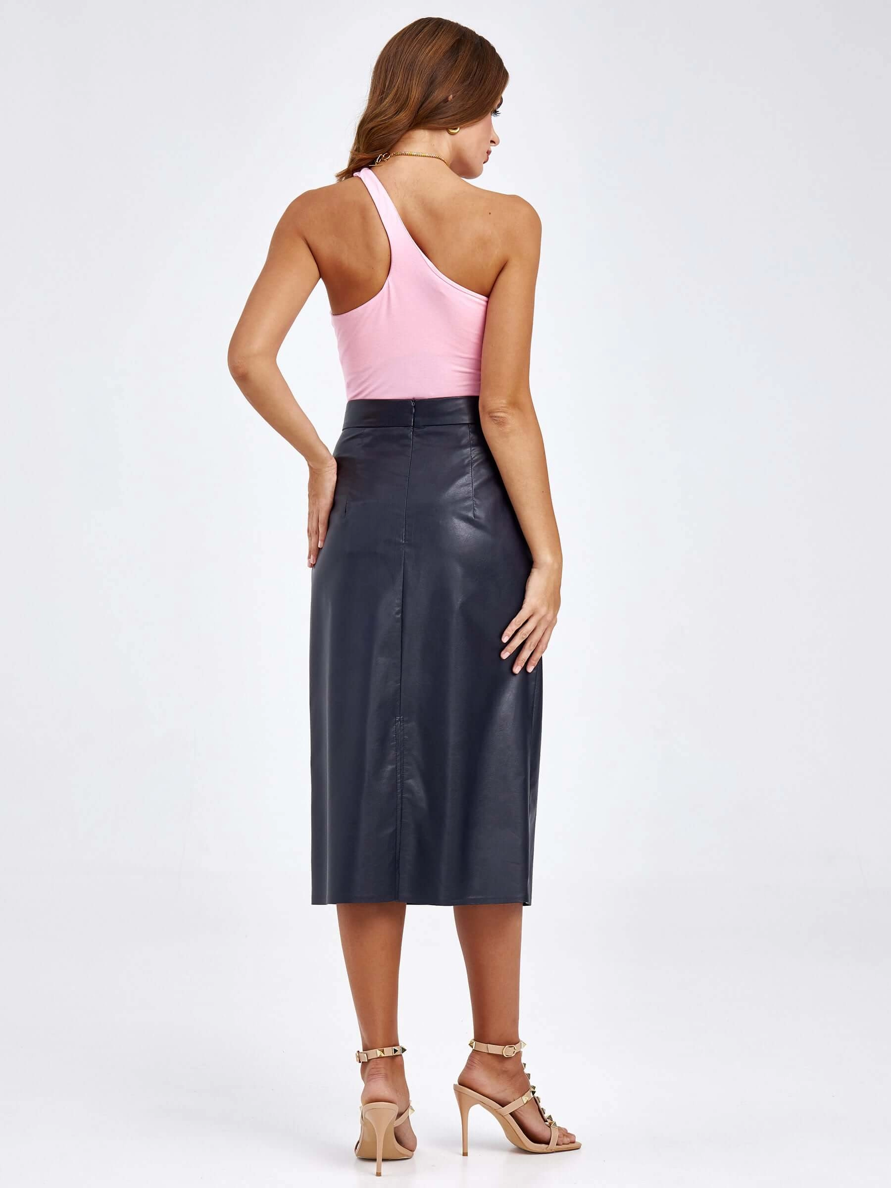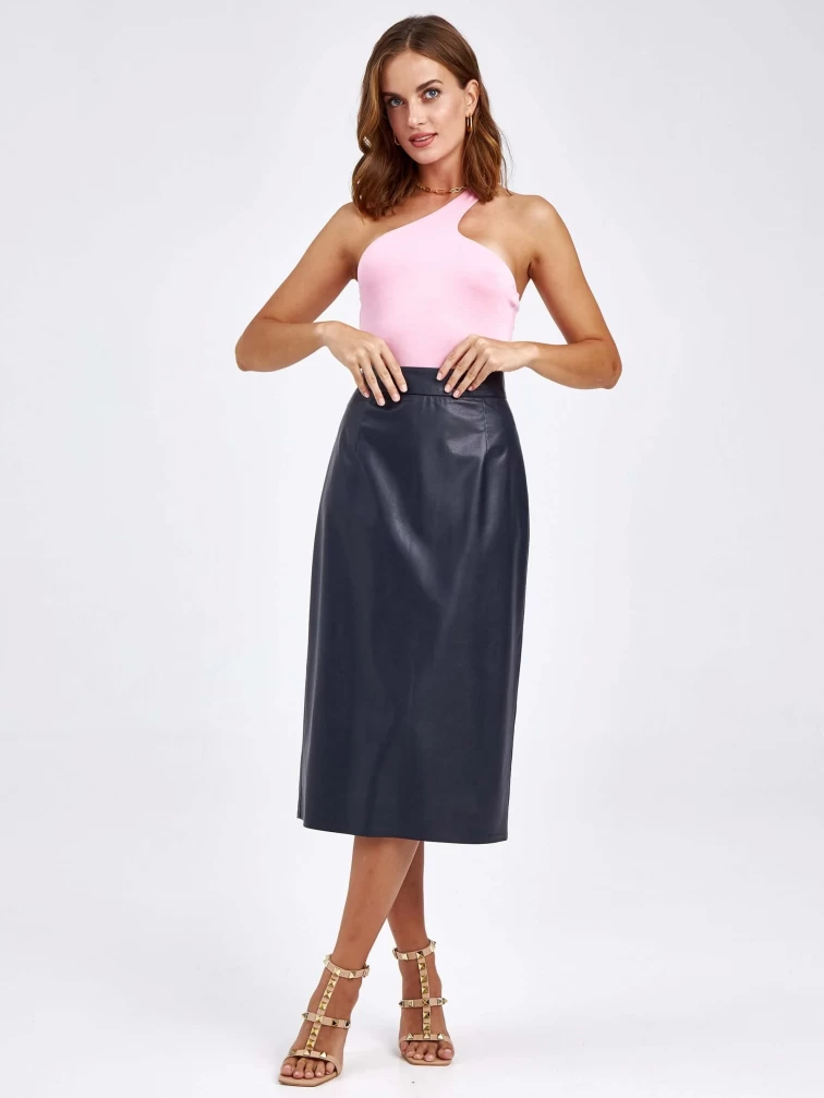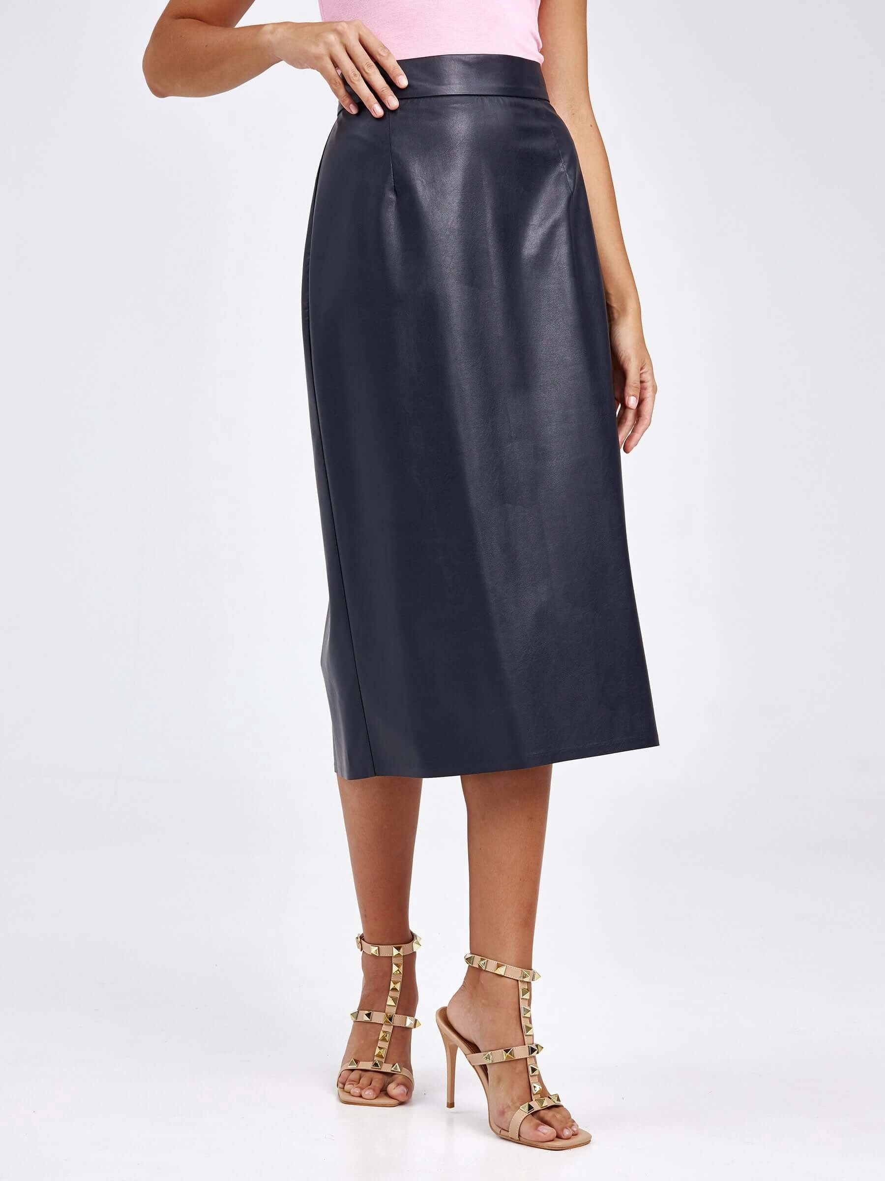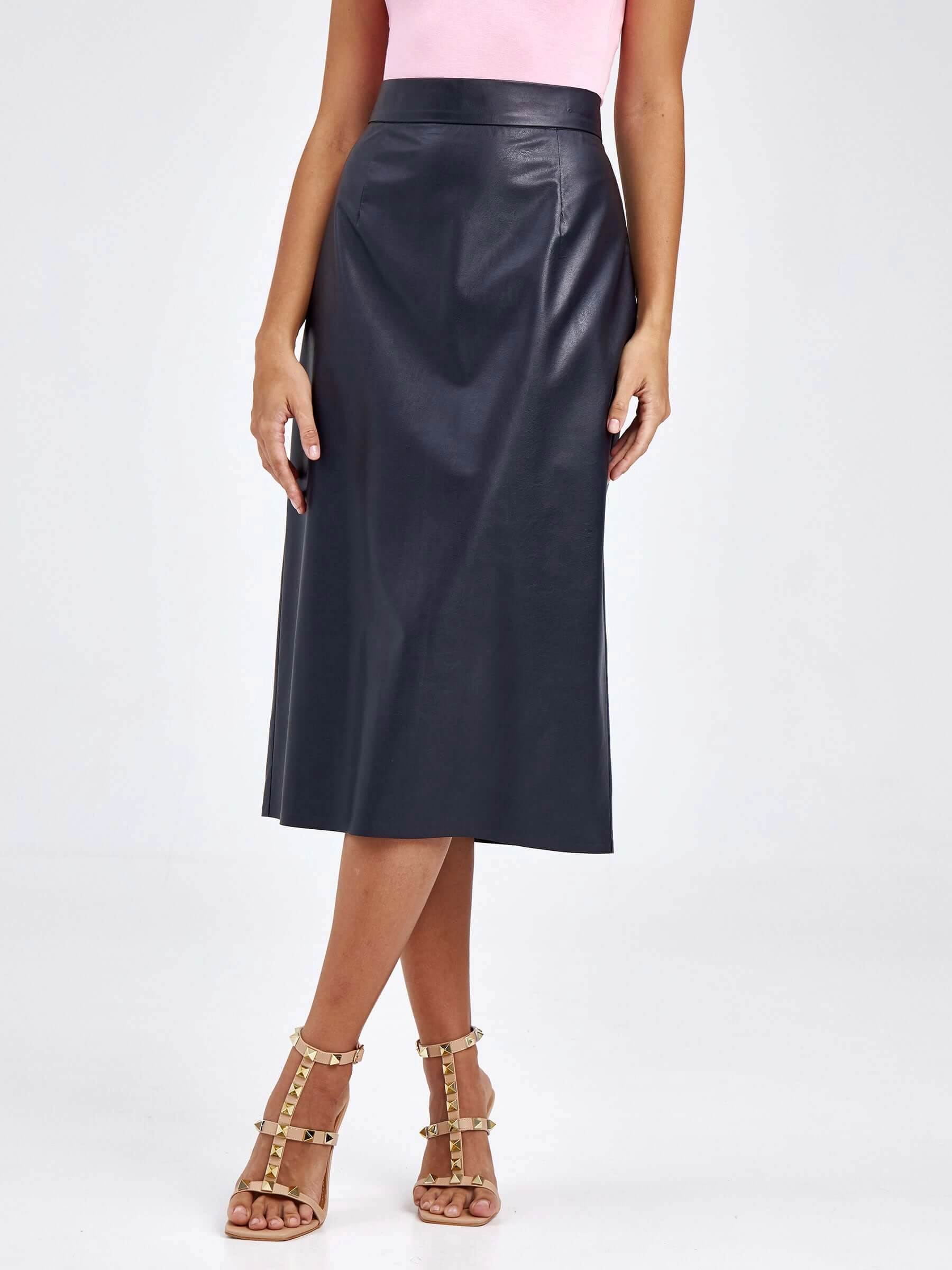 Товар женские кожаная юбка из экокожи 4540007, синяя, размер 48, артикул 85750 выполнен из экокожи с застежкой молния. Рассчитан на сезон: демисезон. Длина изделия миди, силуэт прямой.