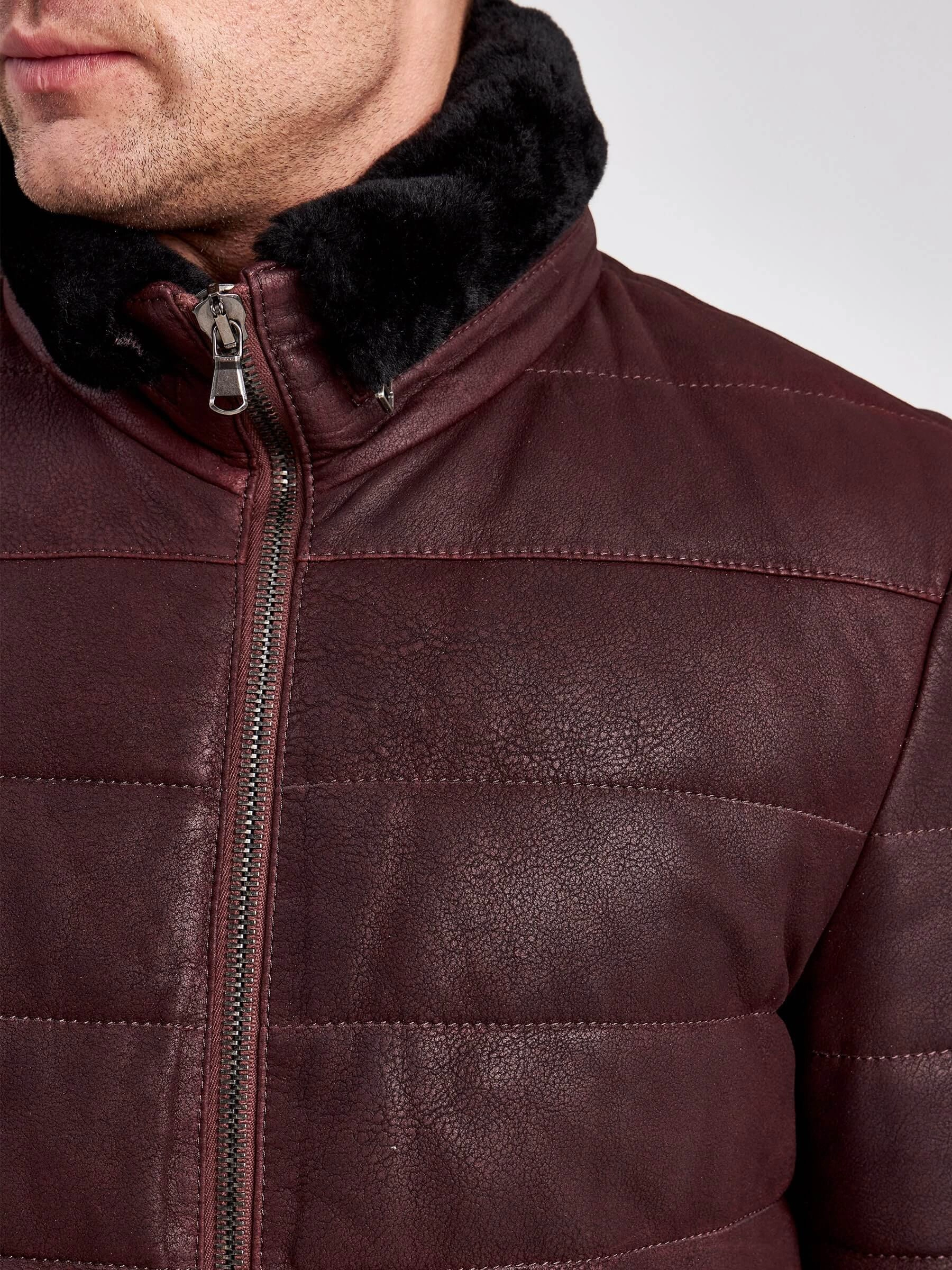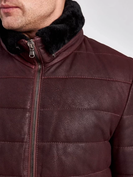 Кожаный пуховик зимний мужской 4678, короткий, бордовый, размер 50, артикул 23120