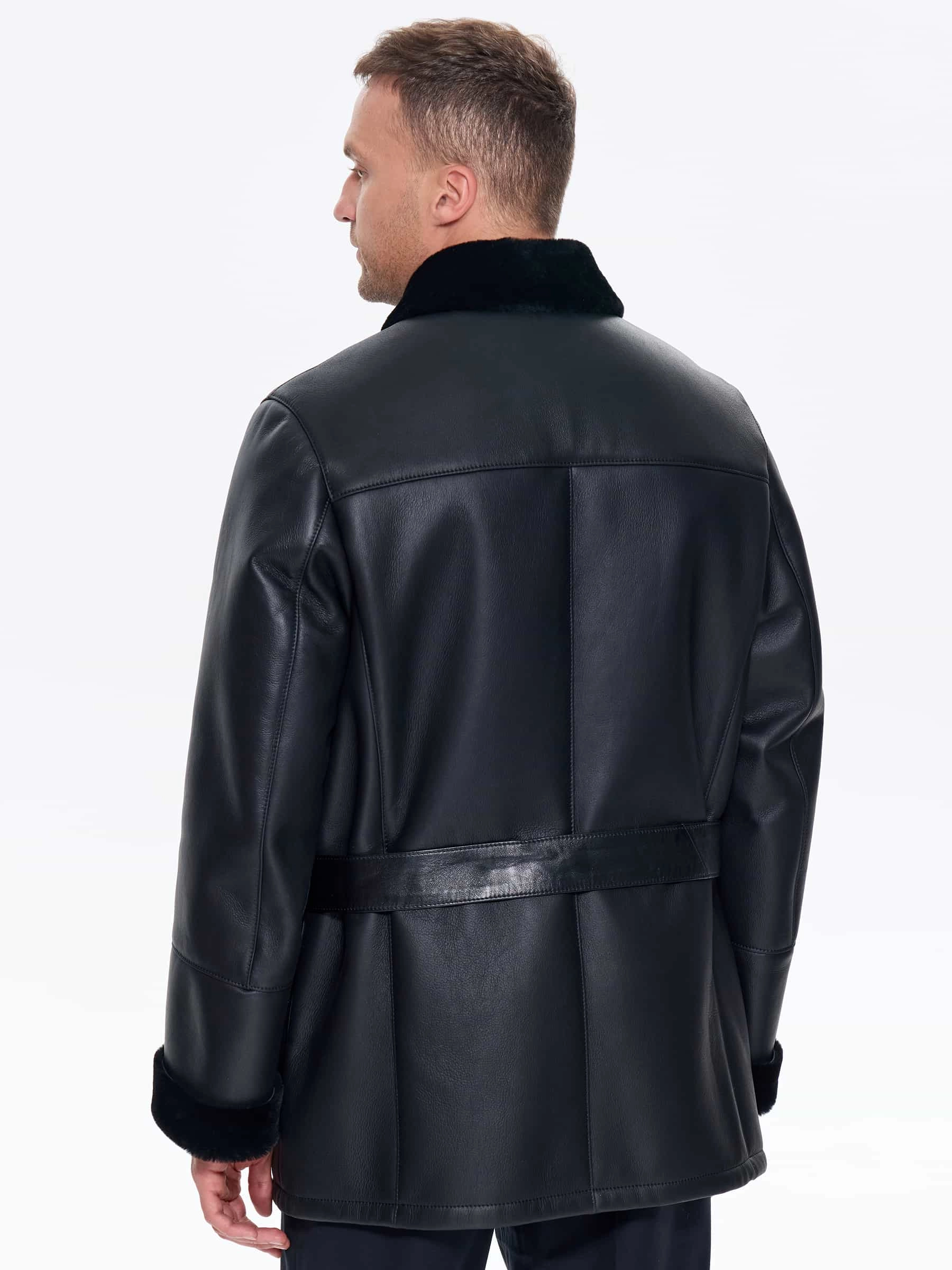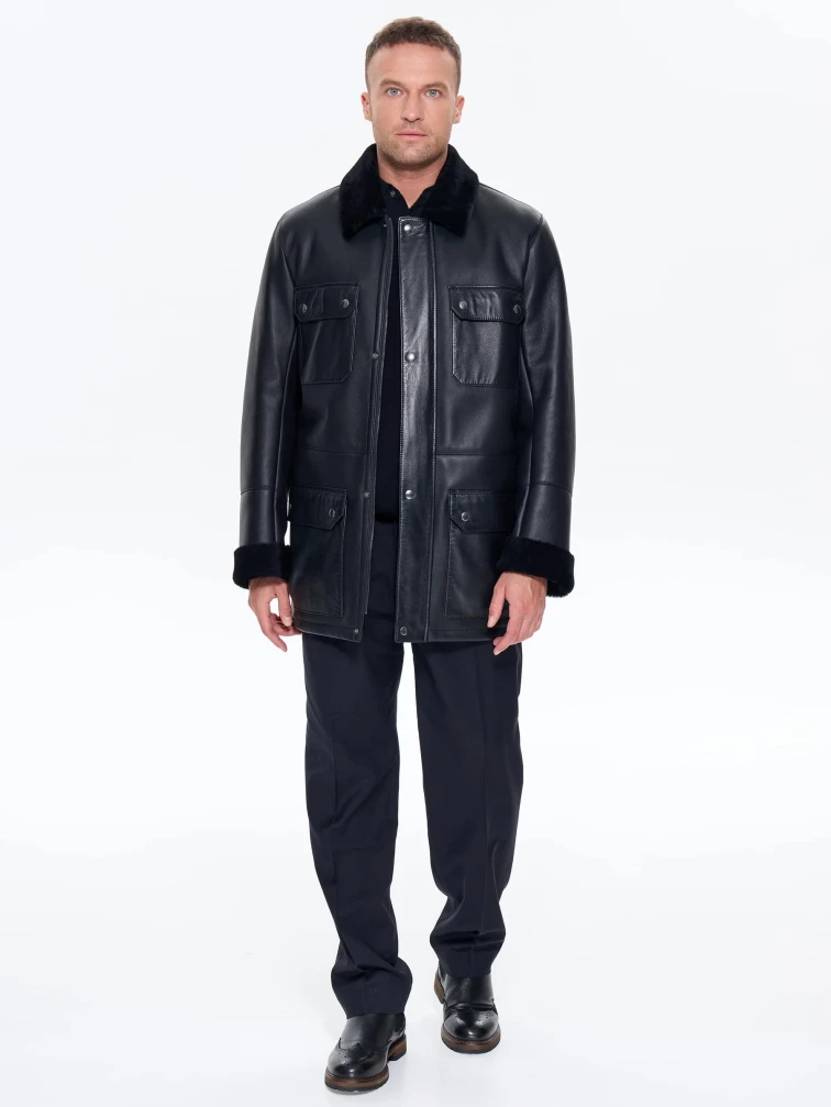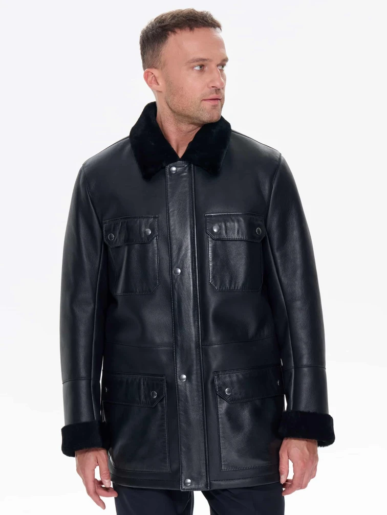 Молодежная мужская дубленка премиум класса 440, черная, размер 48, артикул 41220
