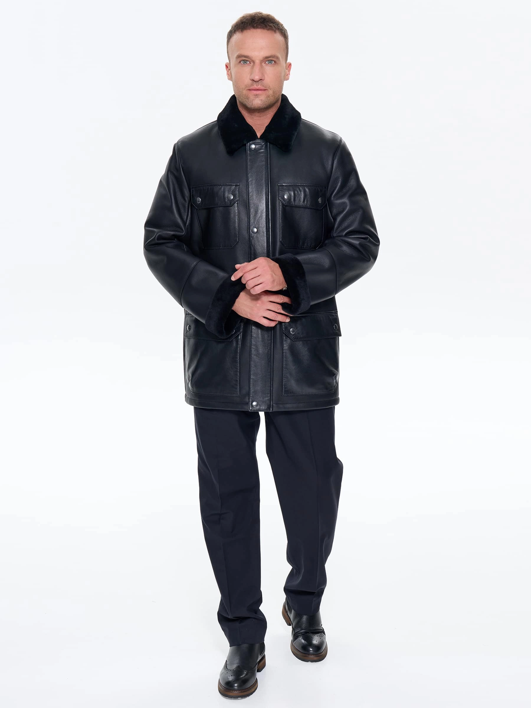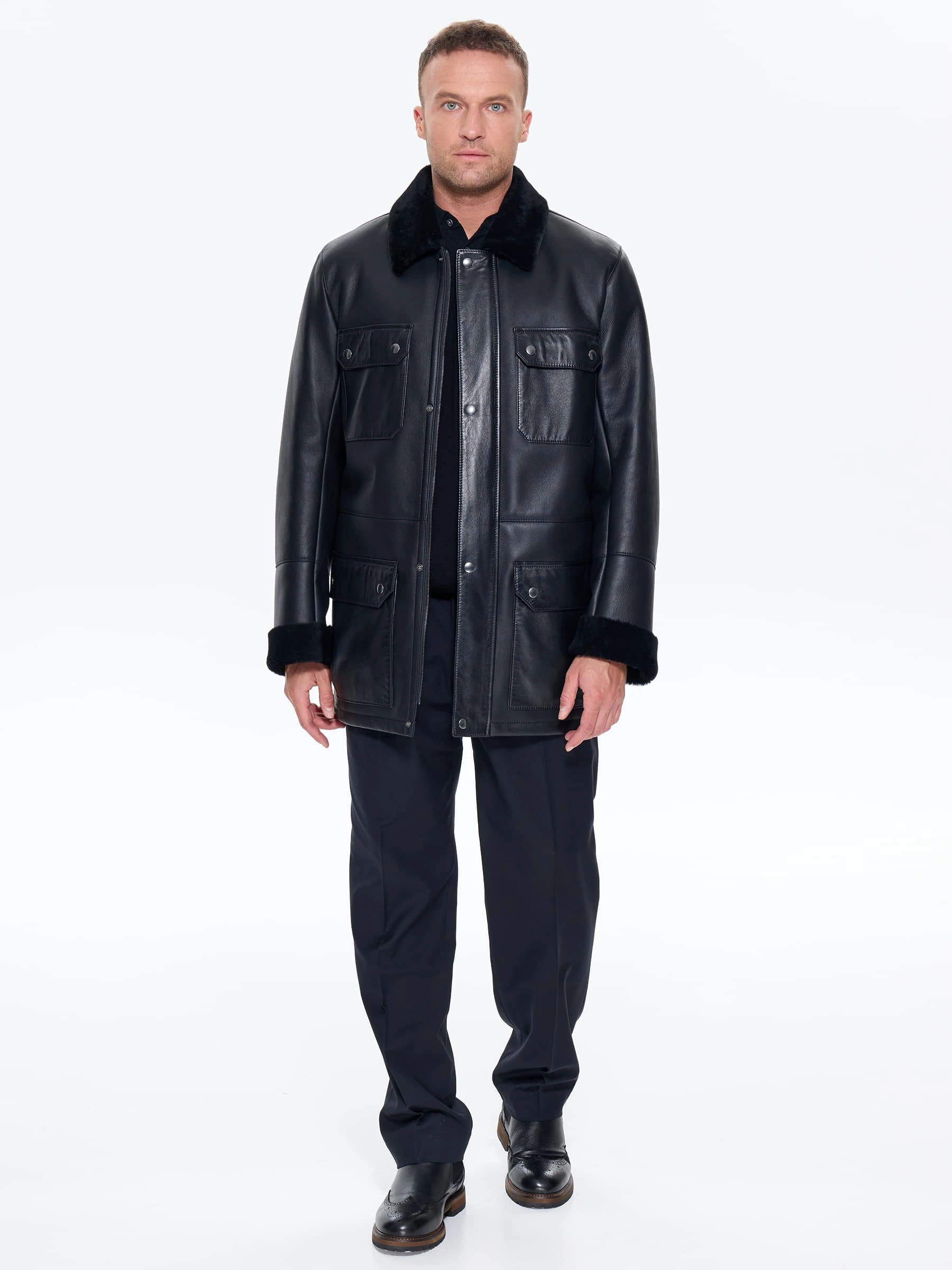Удлиненная мужская дубленка в casual-стиле из отборной натуральной овчины с шелковистым ворсом сочетает современный дизайн с практичностью. Модель выполнена в прямом универсальном крое с отложным воротником увеличенной высоты для надежной защиты от ветра. Застежка на молнии с ветрозащитной планкой обеспечивает дополнительную защиту от непогоды. Функциональность подчеркивают два нагрудных и два объемных боковых кармана с клапанами. Усиленные швы в местах нагрузки гарантируют долговечность носки. Съемный широкий пояс позволяет менять силуэт, адаптируя дубленку к разным образам — от повседневного с худи и объемными свитерами до более строгого с классической рубашкой. Мягкий гипоаллергенный мех обеспечивает естественную терморегуляцию, а удлиненный фасон дает максимальную защиту от холода. Качественная выделка шкур гарантирует прочность и износостойкость. Эта модель представлена в нейтральных природных оттенках и станет идеальным выбором для современных мужчин, ценящих комфорт и стиль.