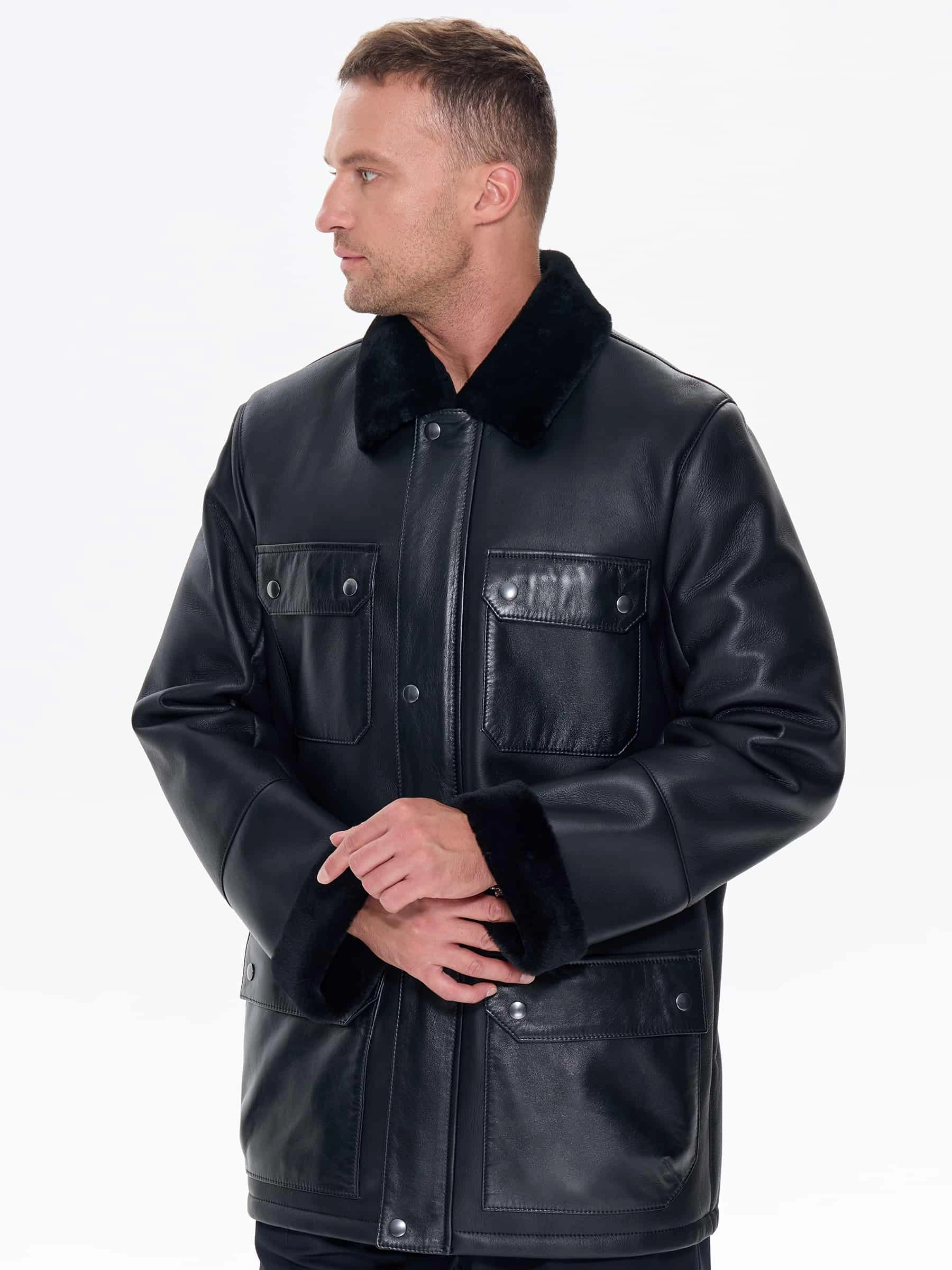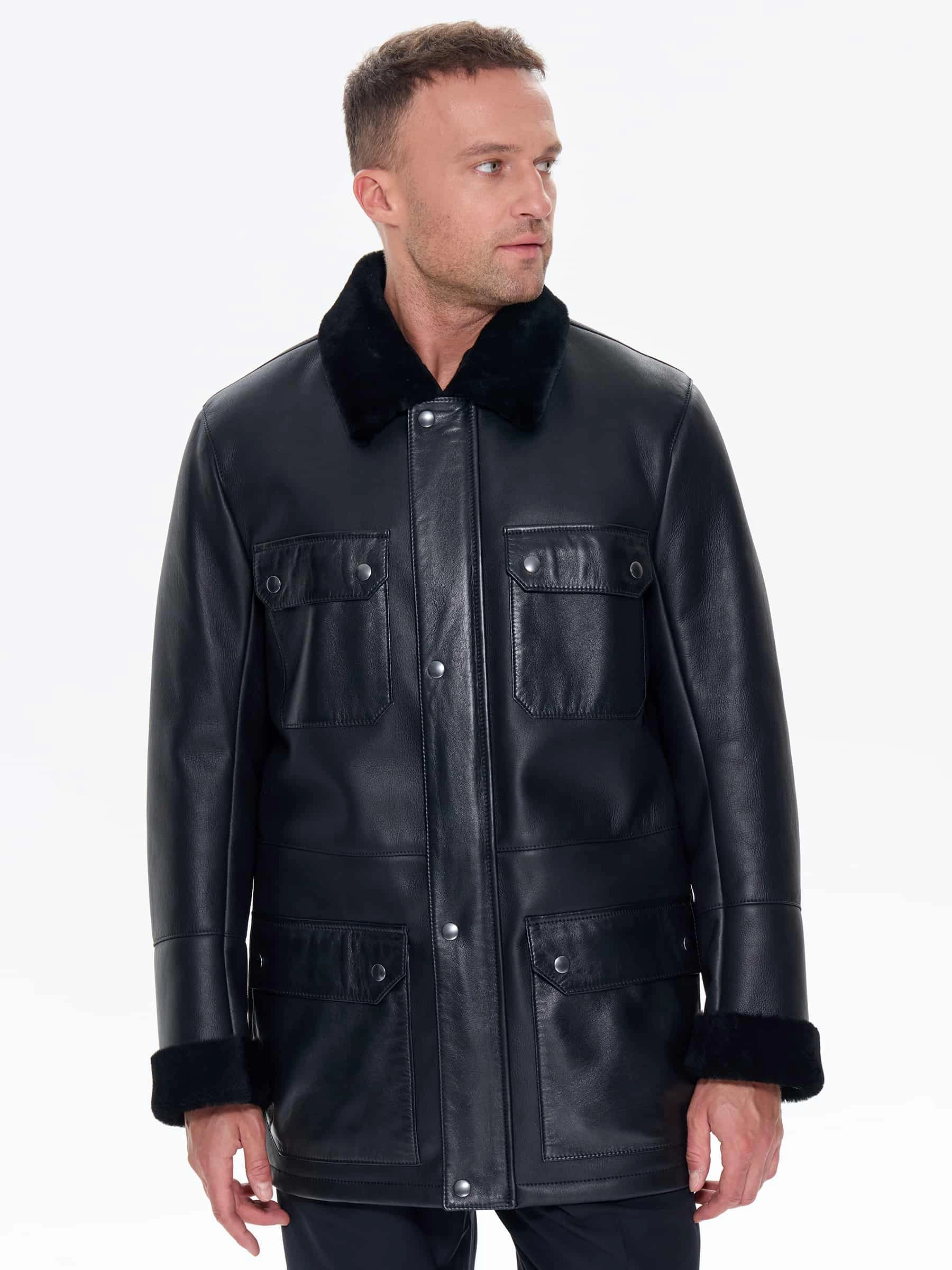 Товар молодежная мужская дубленка премиум класса 440, черная, размер 48, артикул 41220 выполнен из овчина "мерино" с застежкой молния+кнопки. Рассчитан на сезон: зима. Длина изделия 81 см, силуэт прямой.