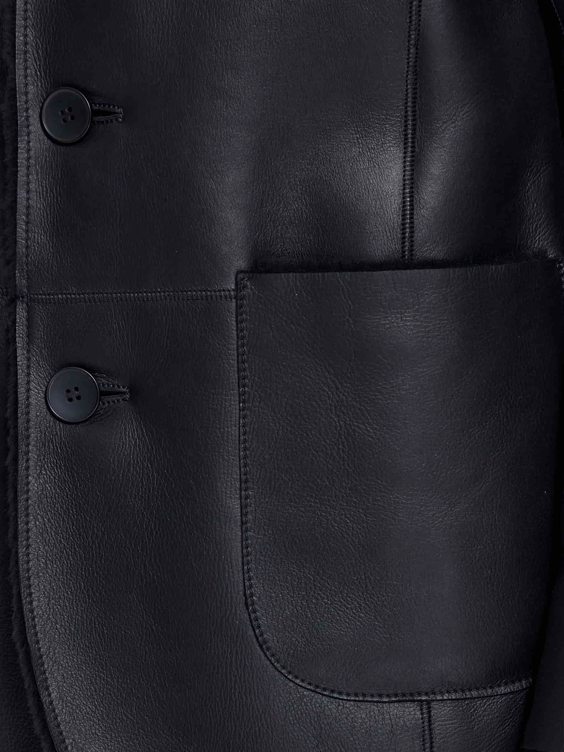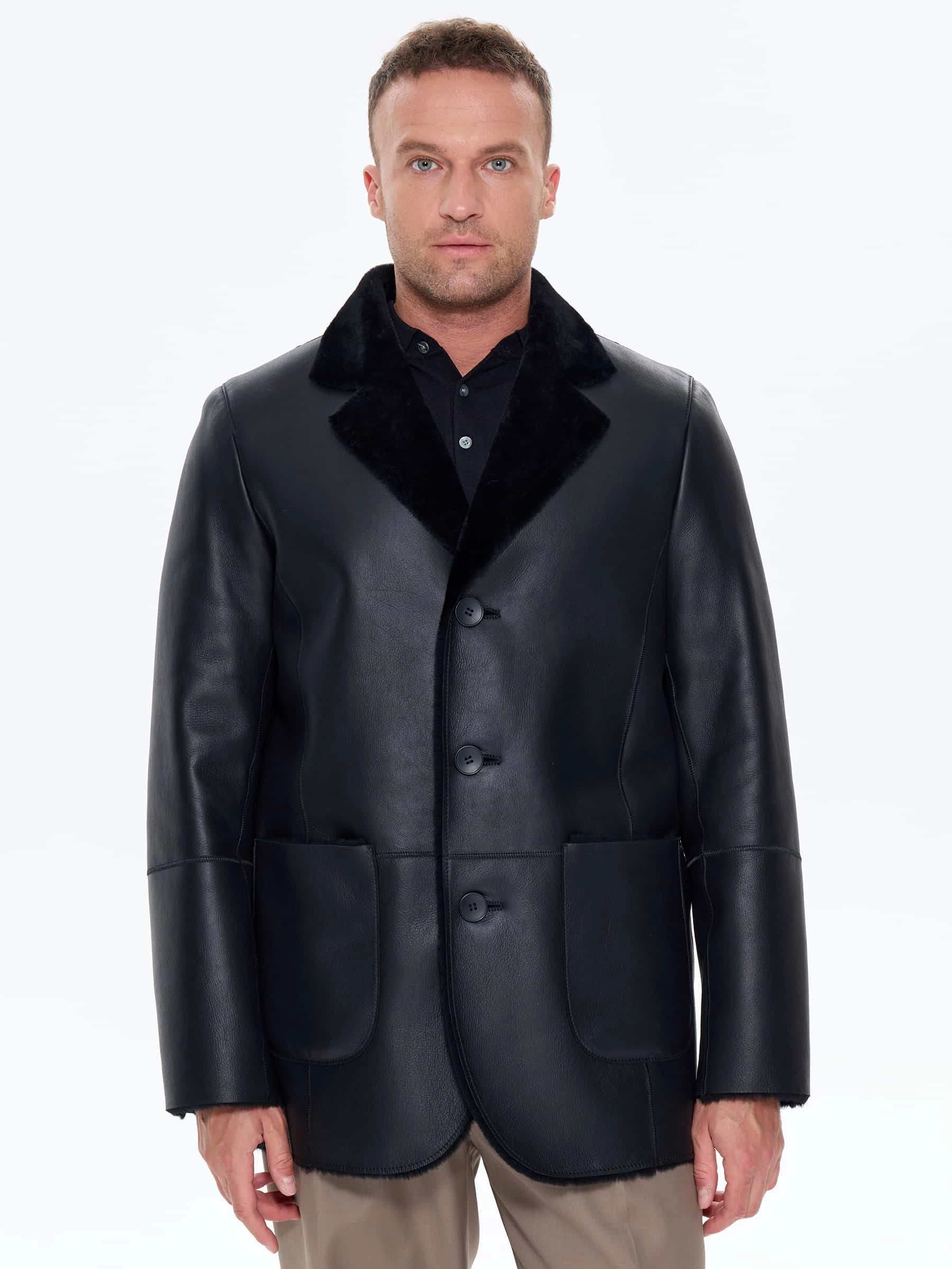 Мужская дубленка пиджак премиум класса 443, черная, размер 50, артикул 41210