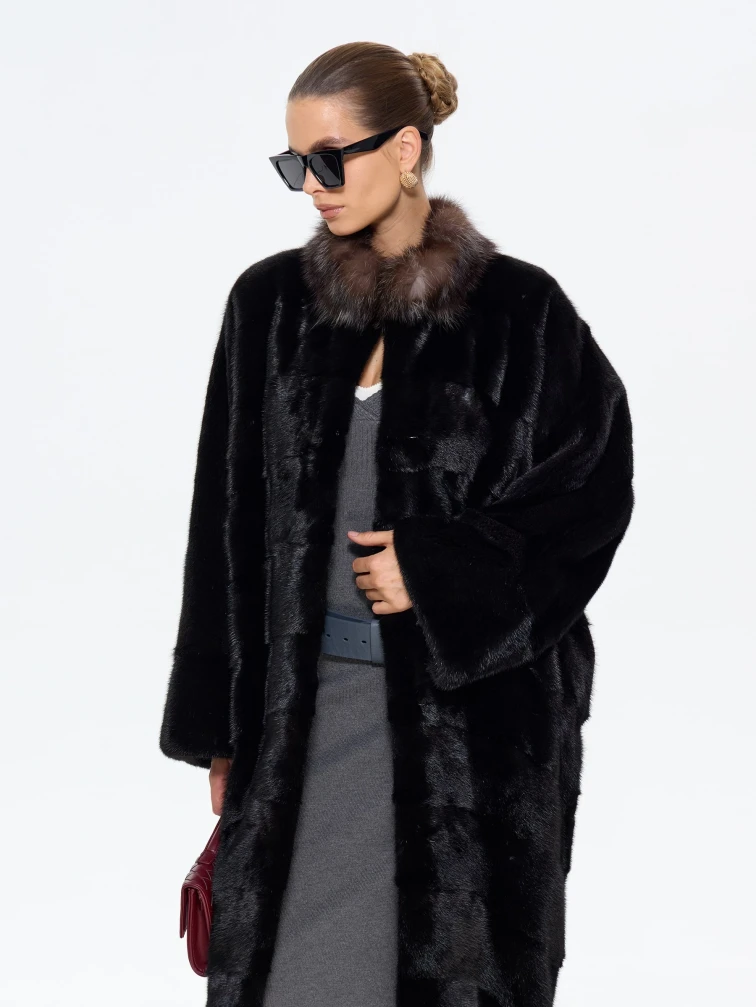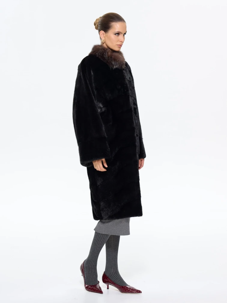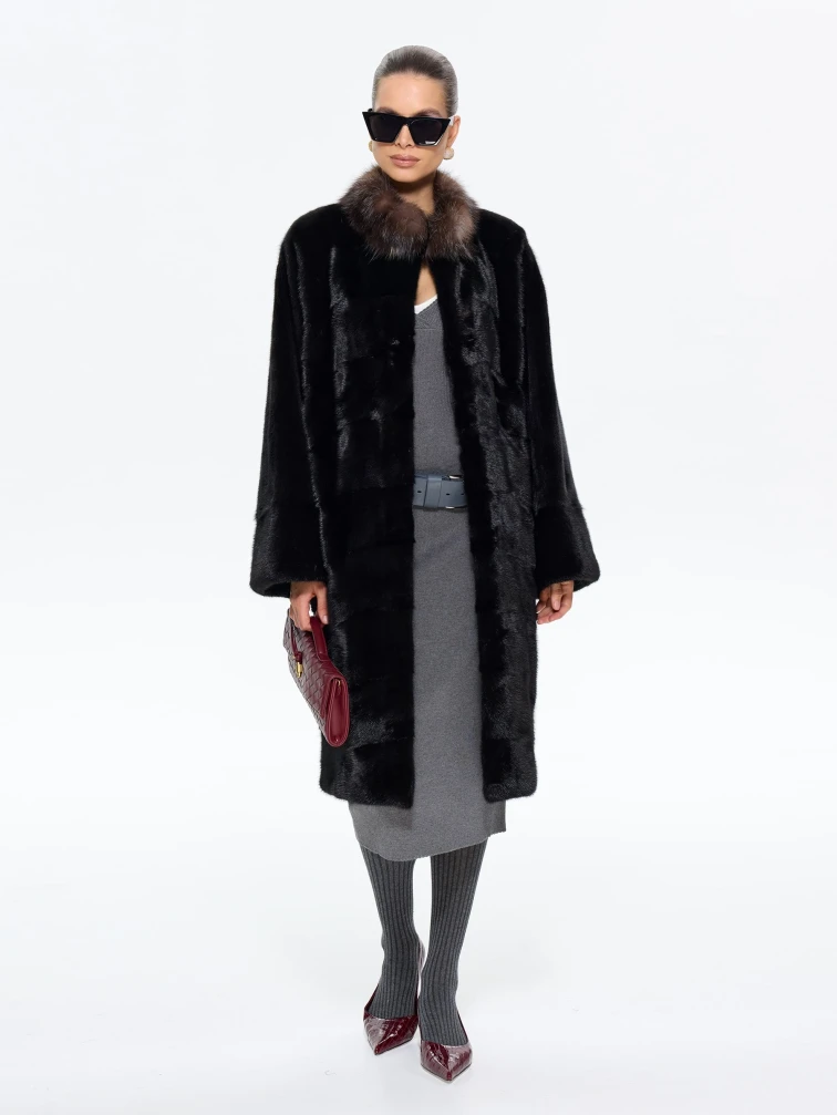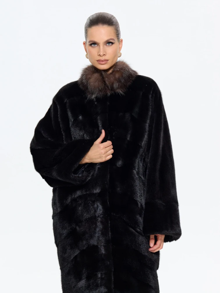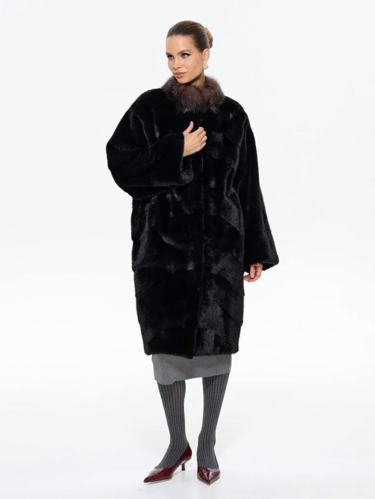 Товар норковая длинная женская шуба анастасия, черная, размер 44, артикул 65650 выполнен из мех норки с застежкой клипсы. Рассчитан на сезон: зима. Длина изделия 110 см, силуэт прямой.