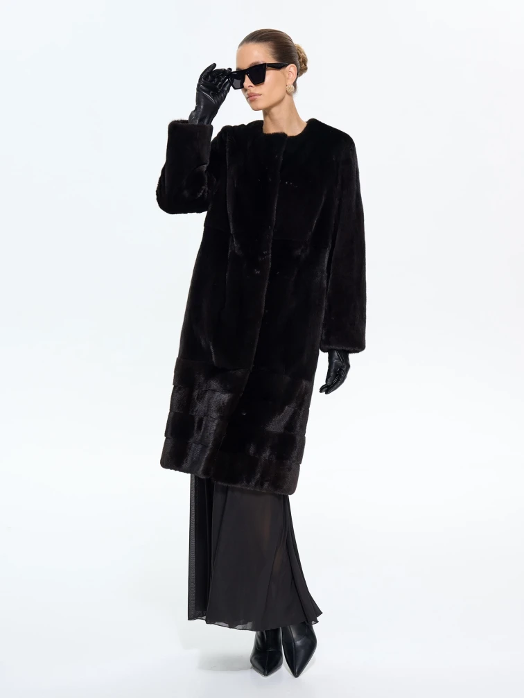 Норковая женская шуба BRASCHI NJ 13/C13, черная, размер 44, артикул 34380