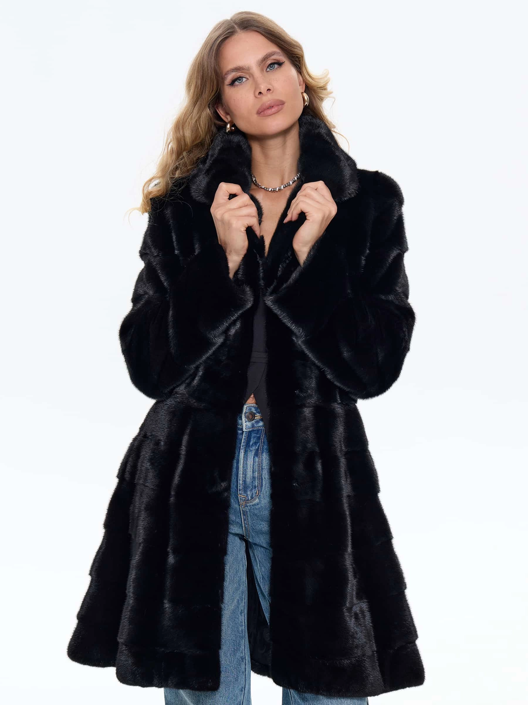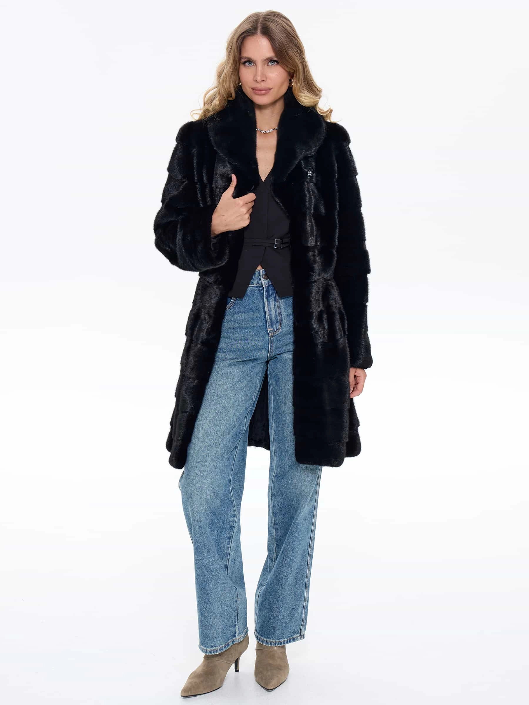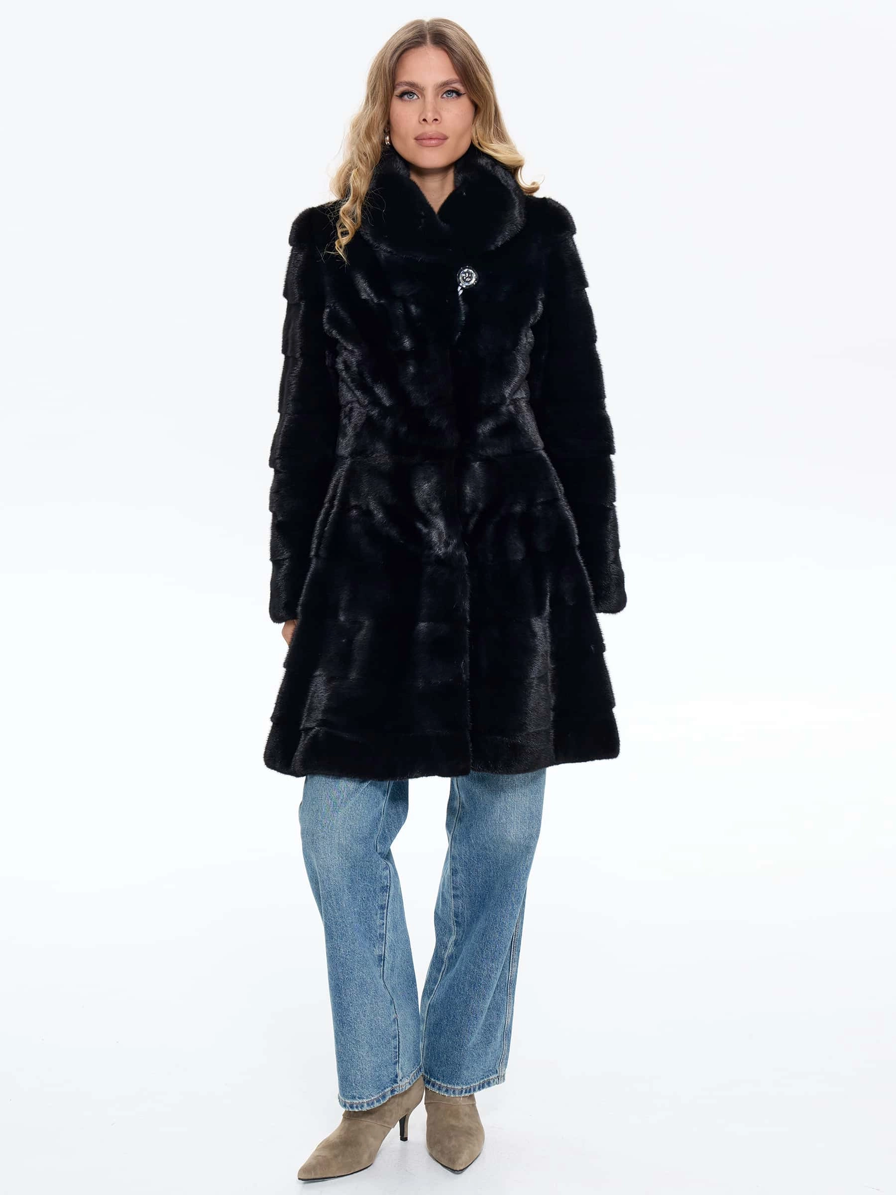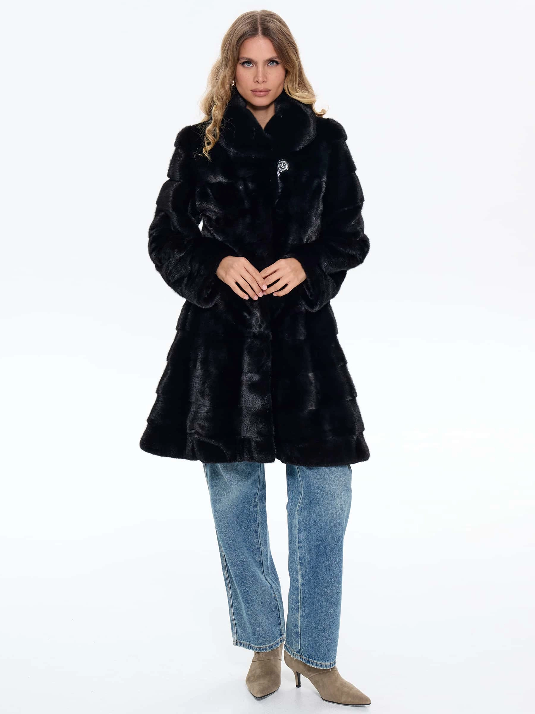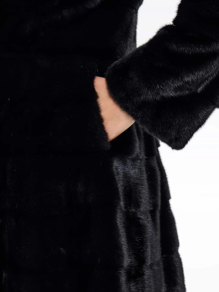 Поперечная женская шуба из меха норки MANAKAS WMF10026, черная, размер 40, артикул 34300