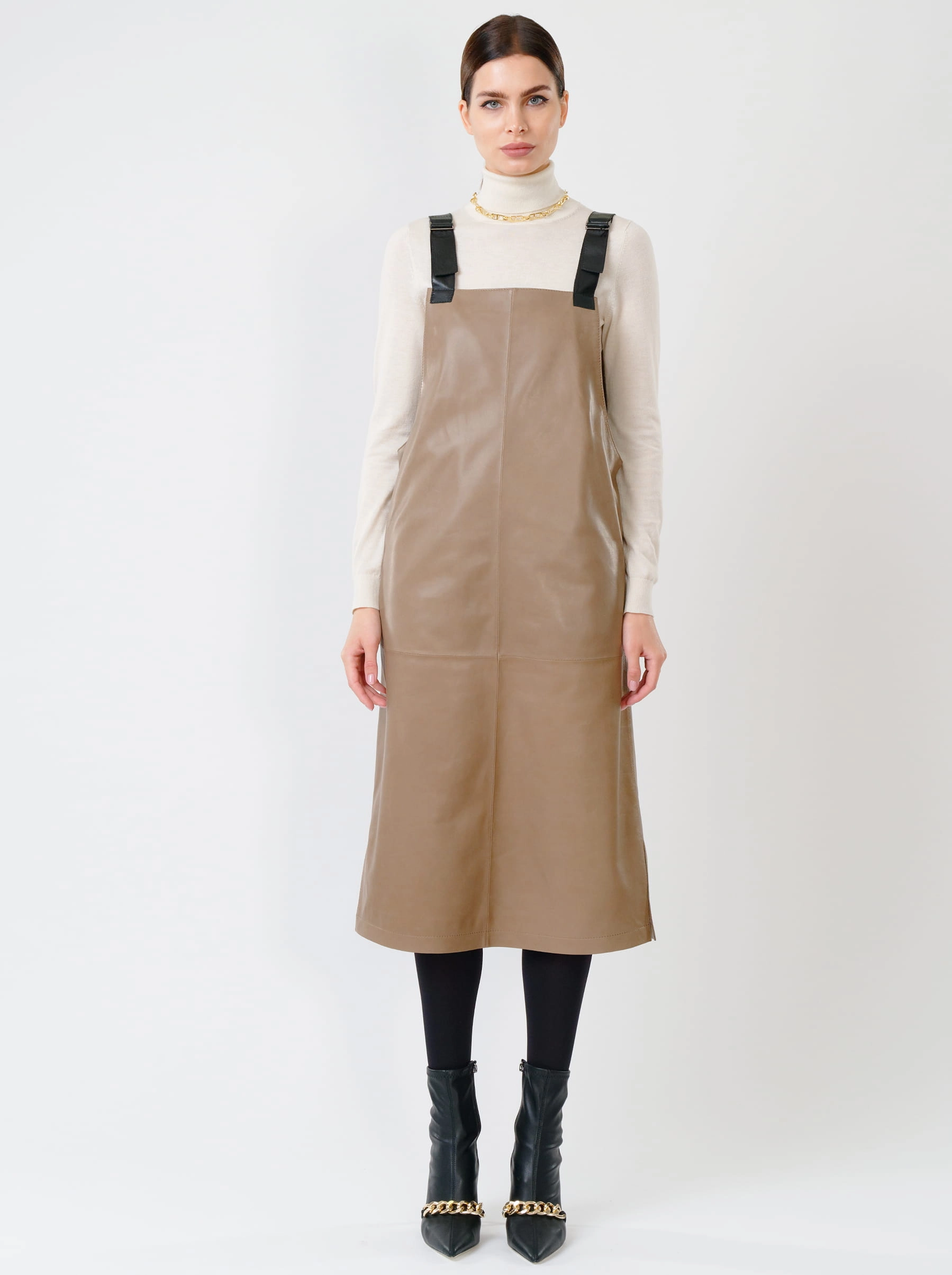 Кожаный сарафан 01, серо-коричневый, размер 44, артикул 85271