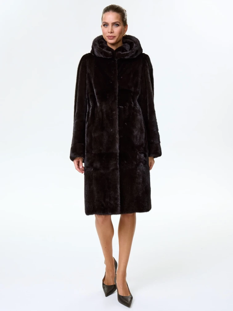 Шуба длинная из меха норки женская Надежда(к), черная, размер 48, артикул 64530