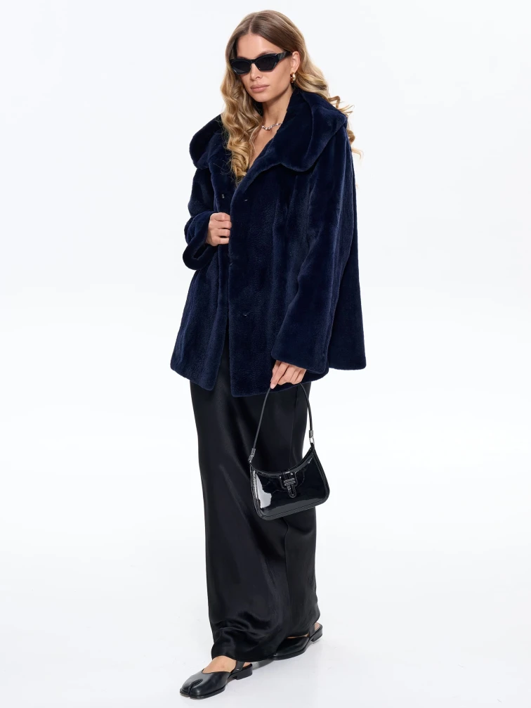 Товар синяя женская норковая шуба с капюшоном жанет, размер 54, артикул 65160.