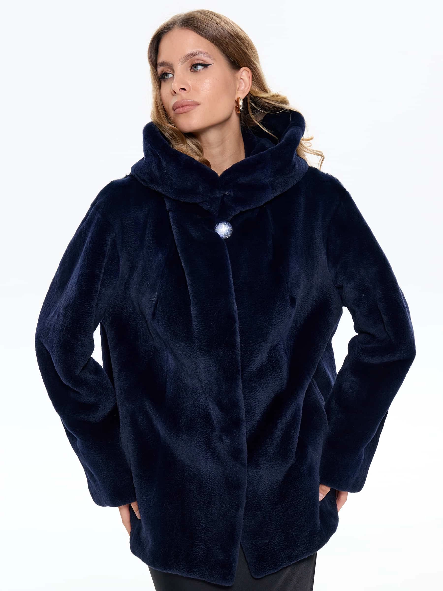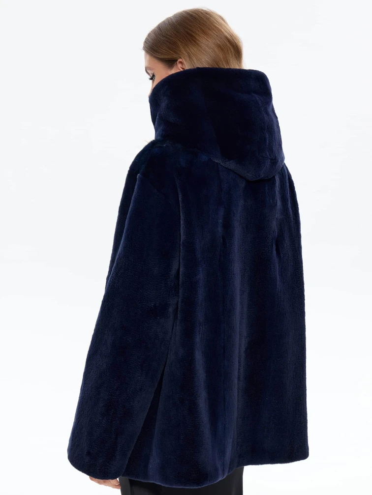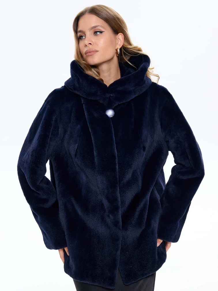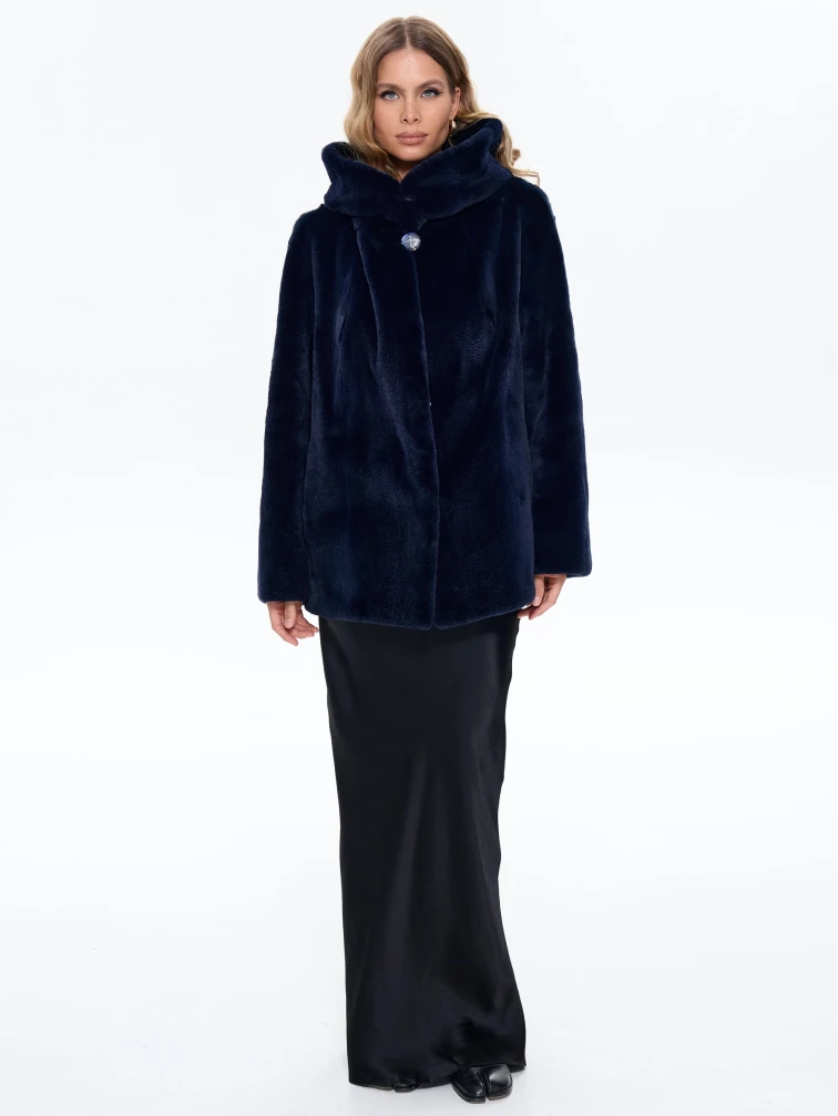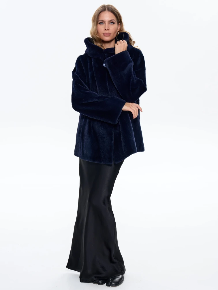 Синяя женская норковая шуба с капюшоном Жанет, размер 54, артикул 65160
