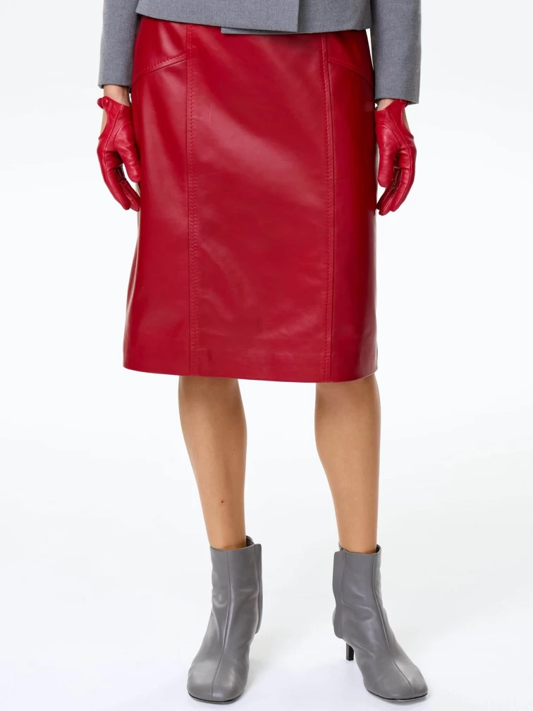 Товар юбка карандаш из натуральной кожи 06, красная, размер 46, артикул 85380 выполнен из натуральной кожи с застежкой молния. Рассчитан на сезон: демисезон. Длина изделия 68 см, силуэт расклешенный.