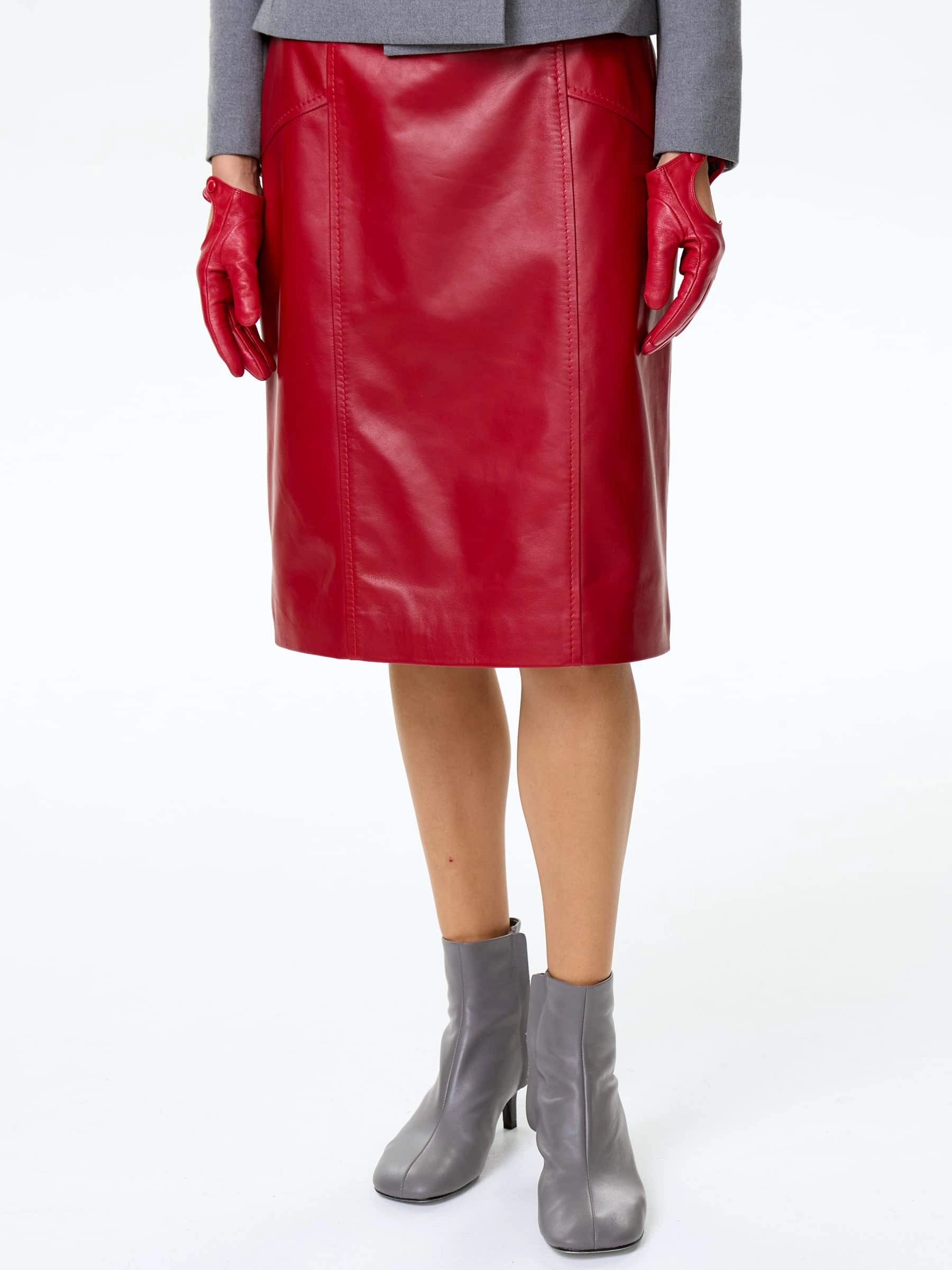 Юбка карандаш из натуральной кожи 06, красная, размер 46, артикул 85380