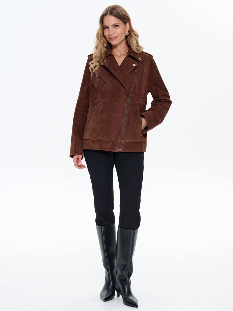Замшевая женская куртка косуха премиум класса 3079з, коньячная, размер 44, артикул 24710