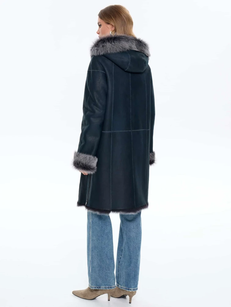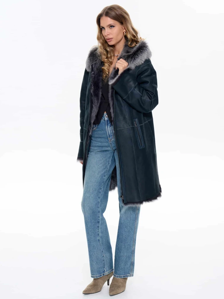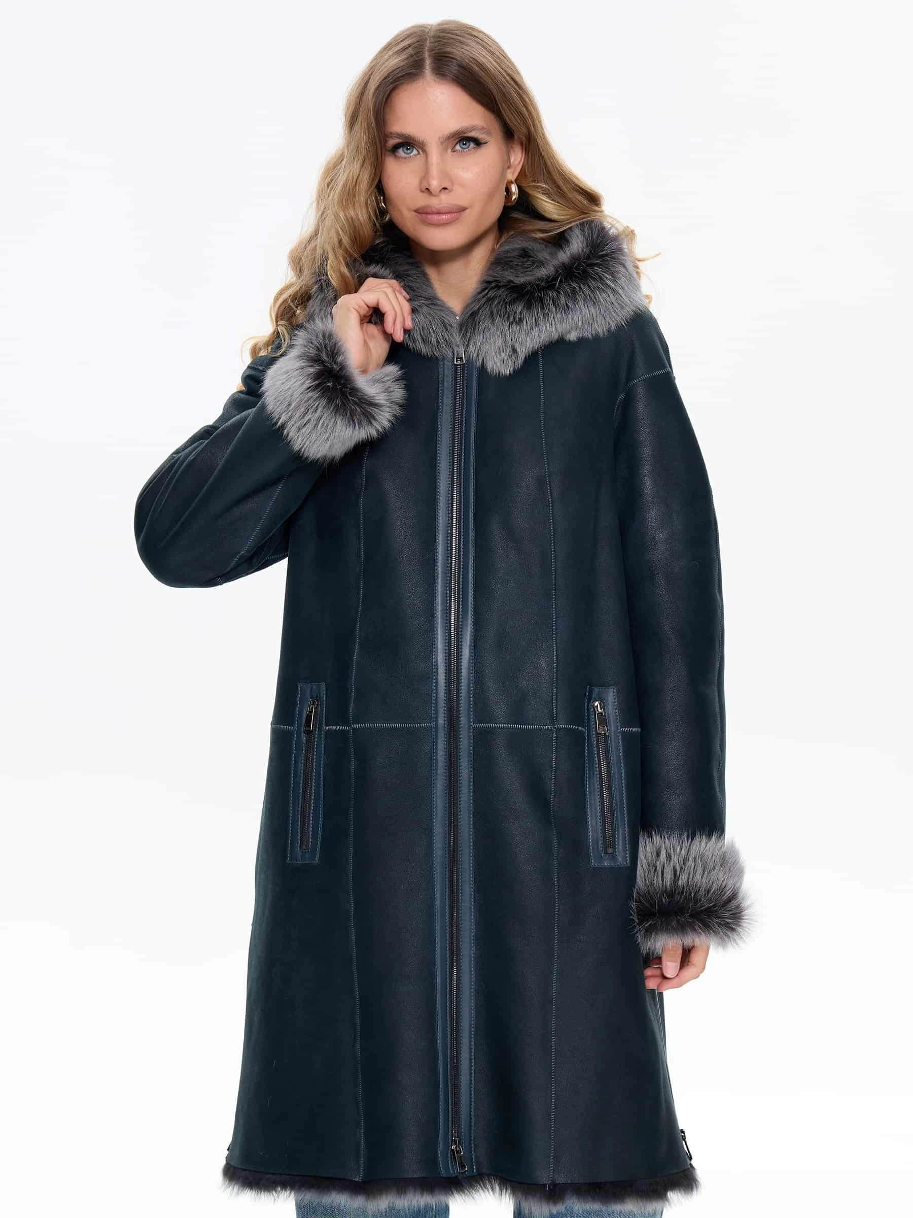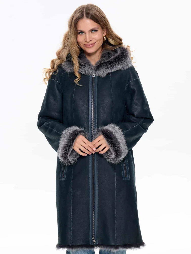 Классическую дублёнку пошили из натуральной шелковистой овчины Тосканы. Полуприлегающий силуэт аккуратно подчёркивает талию. Удобная длина закрывает бёдра, обеспечивая идеальный баланс тепла и мобильности в городе. Доступна в насыщенном синем оттенке – благородном и универсальном. Практичные боковые карманы и глубокий капюшон добавят комфорта в непогоду. Застёжка на молнии завершает элегантный образ
