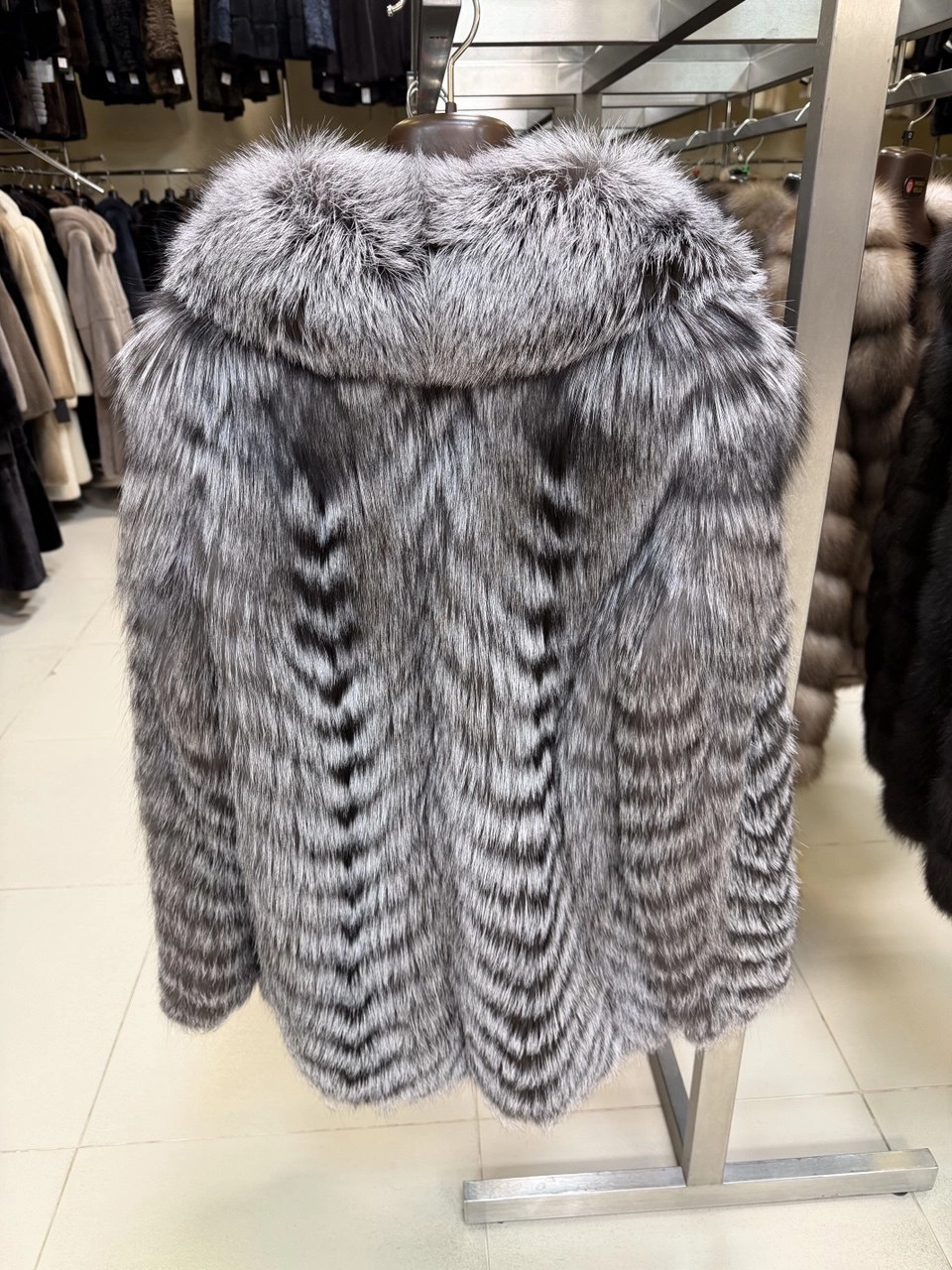 Товар женская короткая шуба из меха лиса л1010-21, серебристо-чёрная, размер 46, артикул 65320 выполнен из мех лисы с застежкой клипсы. Рассчитан на сезон: зима. Длина изделия 80 см, силуэт свободный.