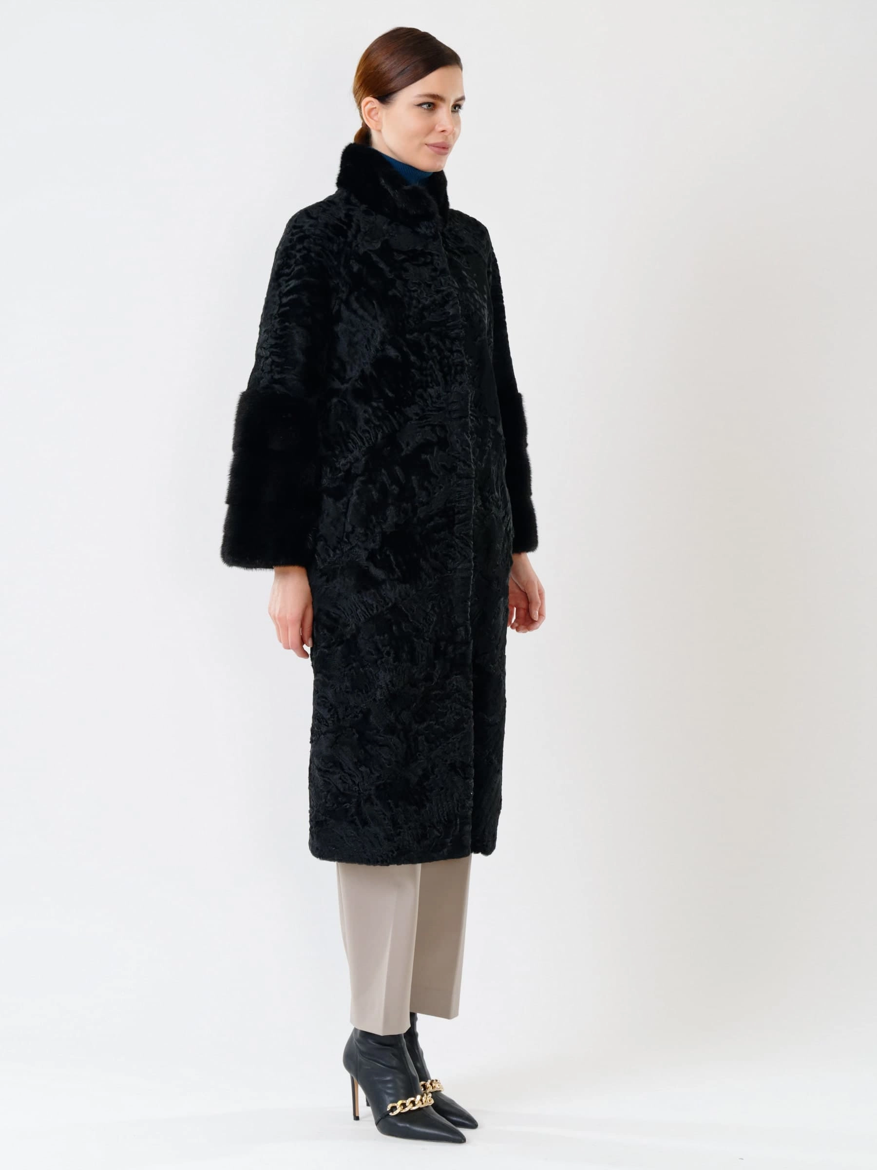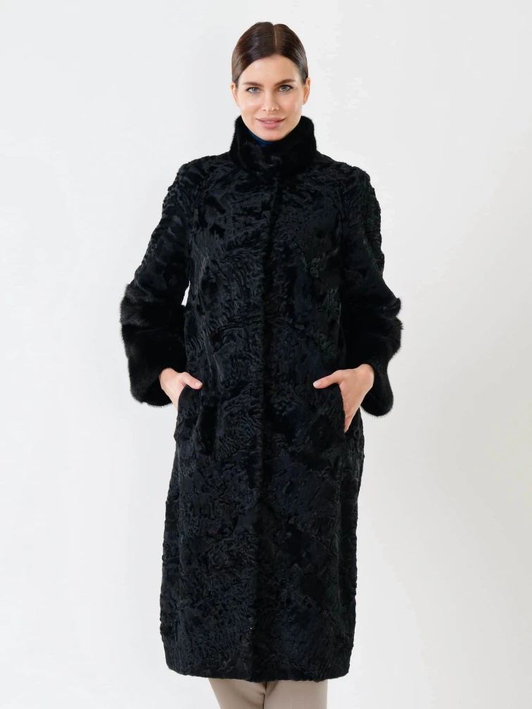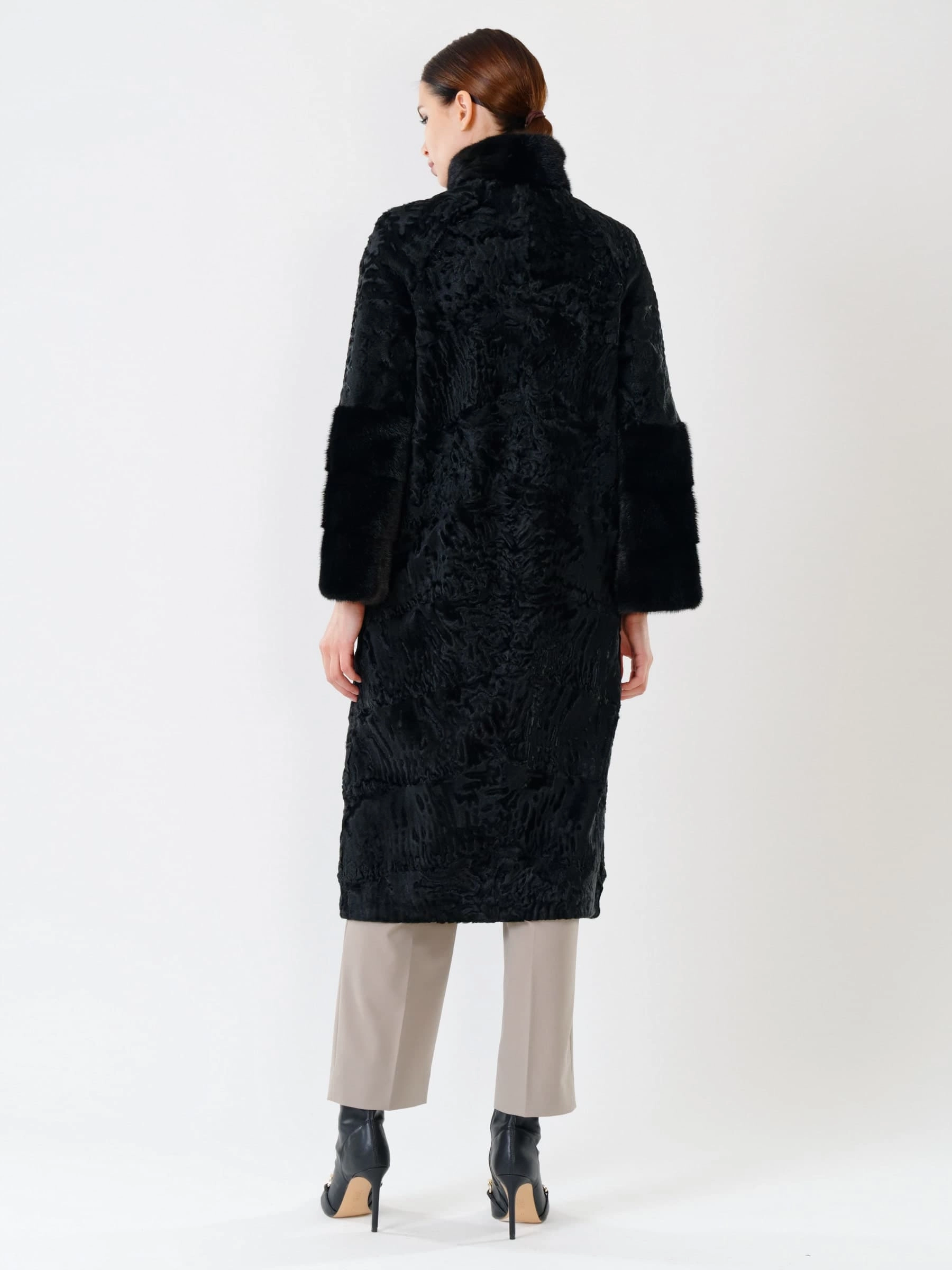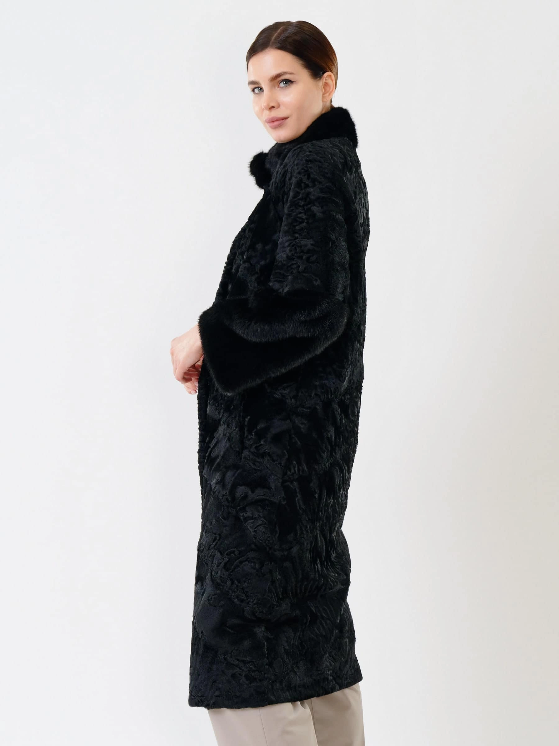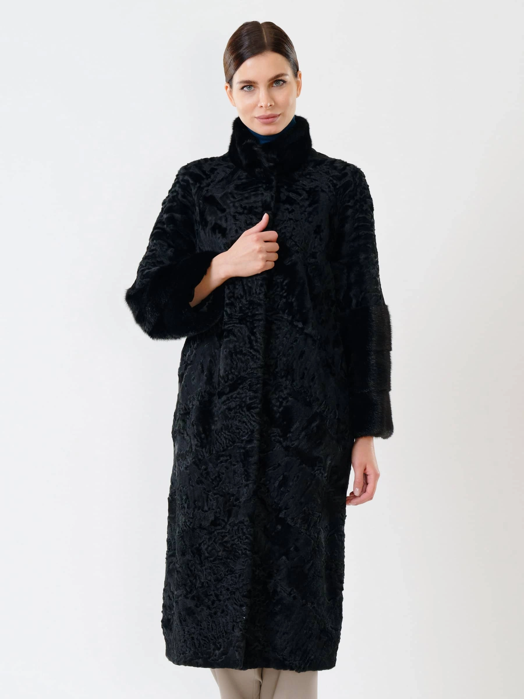 Женская шуба из меха каракуля с мехом норки 17101д(сн), черная, размер 44, артикул 22650