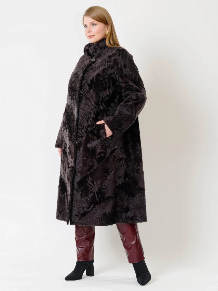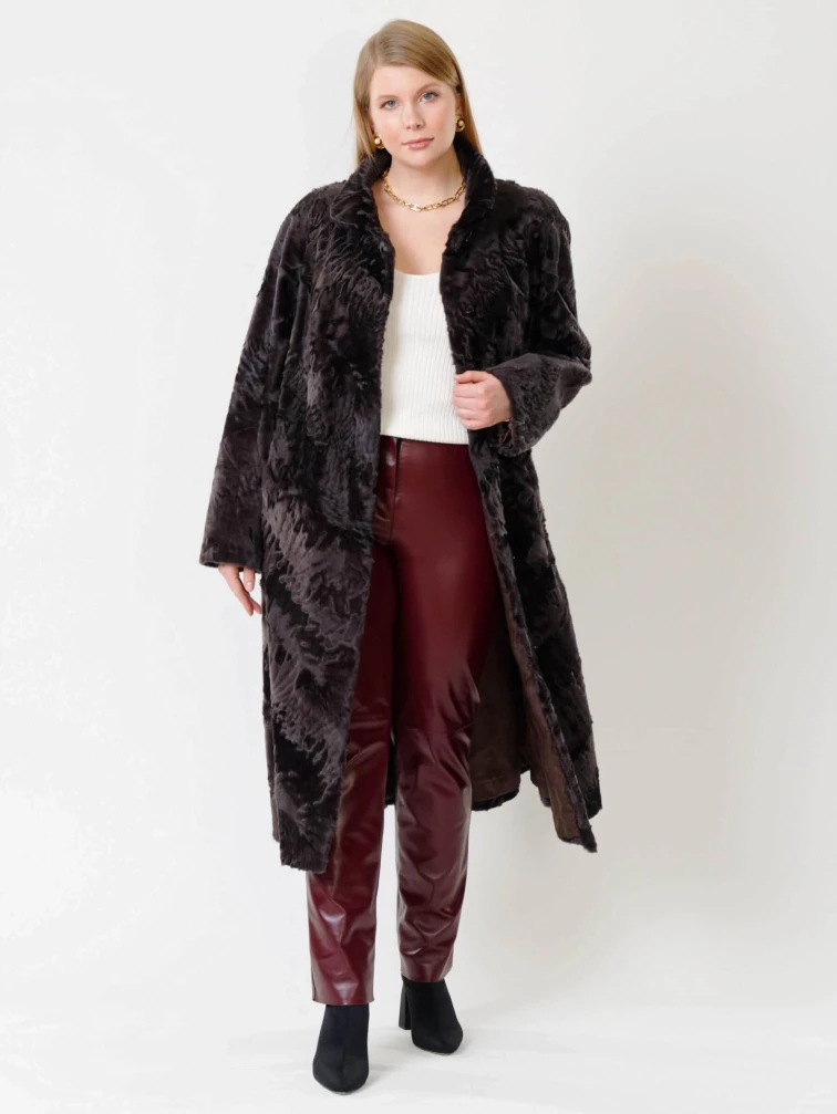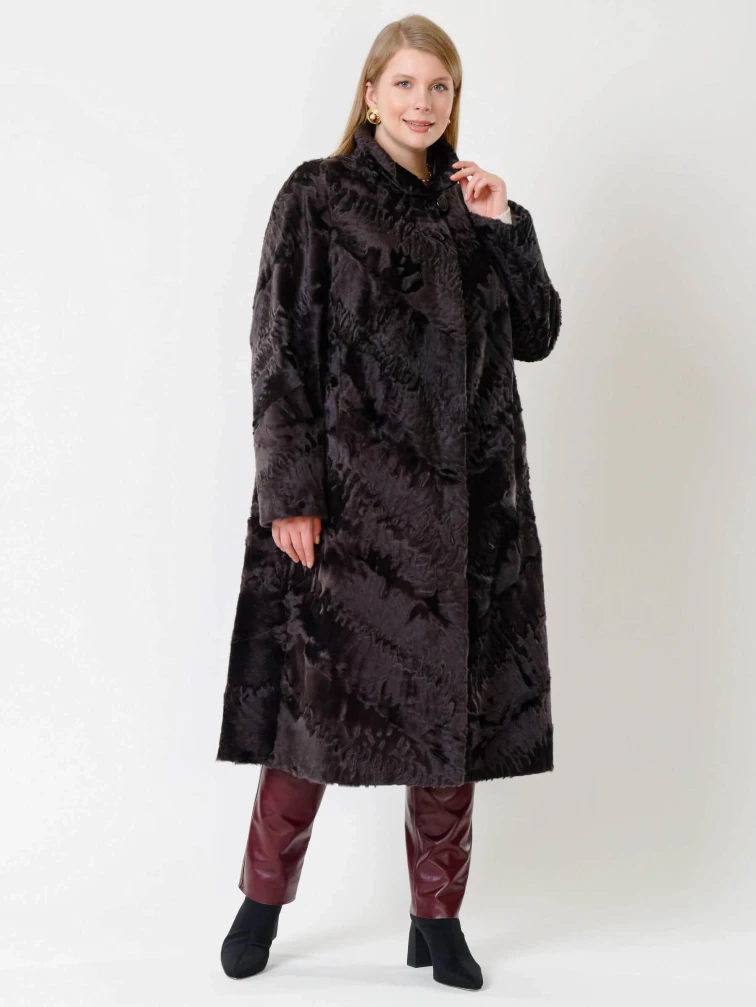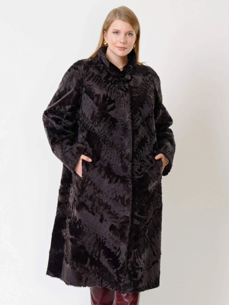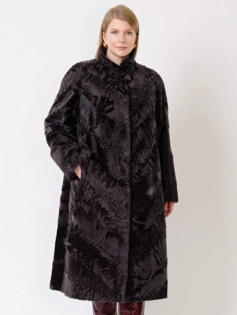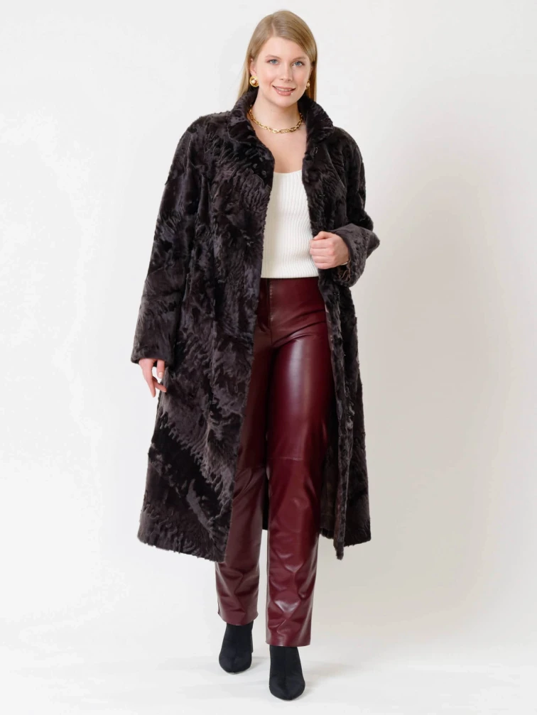 Длинная женская каракулевая шуба Елизавета(с), коричневая, размер 56, артикул 22680