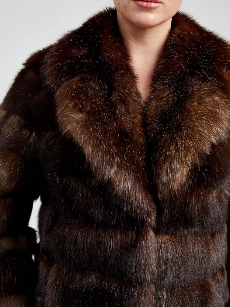 Женская шуба из меха соболя 2а(ав), коричневая, размер 44, артикул 19200