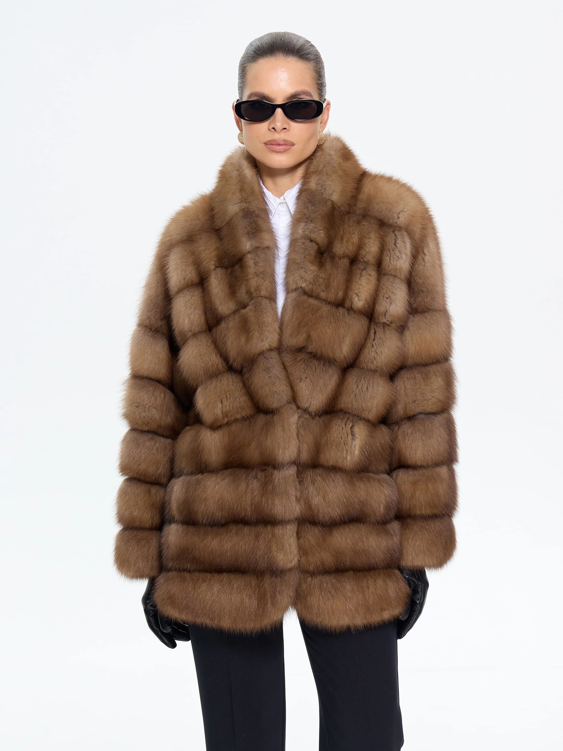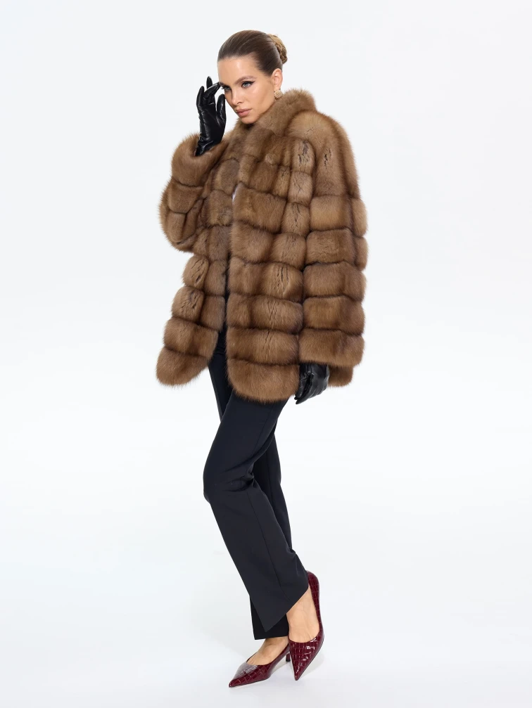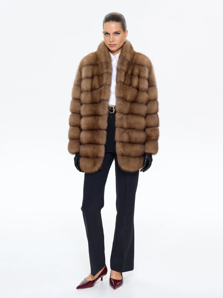 Элегантная шуба из меха куницы премиум-класса длиной 70 см с эффектным V-образным воротником и спущенным рукавом подчеркнет ваш изысканный вкус. Прямой силуэт в светло-коричневом оттенке и скрытые клипсы создают лаконичную элегантность. Стилисты рекомендуют носить эту модель с водолазкой и кожаными брюками для повседневного образа или с платьем-чехлом и сапогами-ботфортами для безупречного вечернего выхода, даря ощущение роскоши и комфорта.