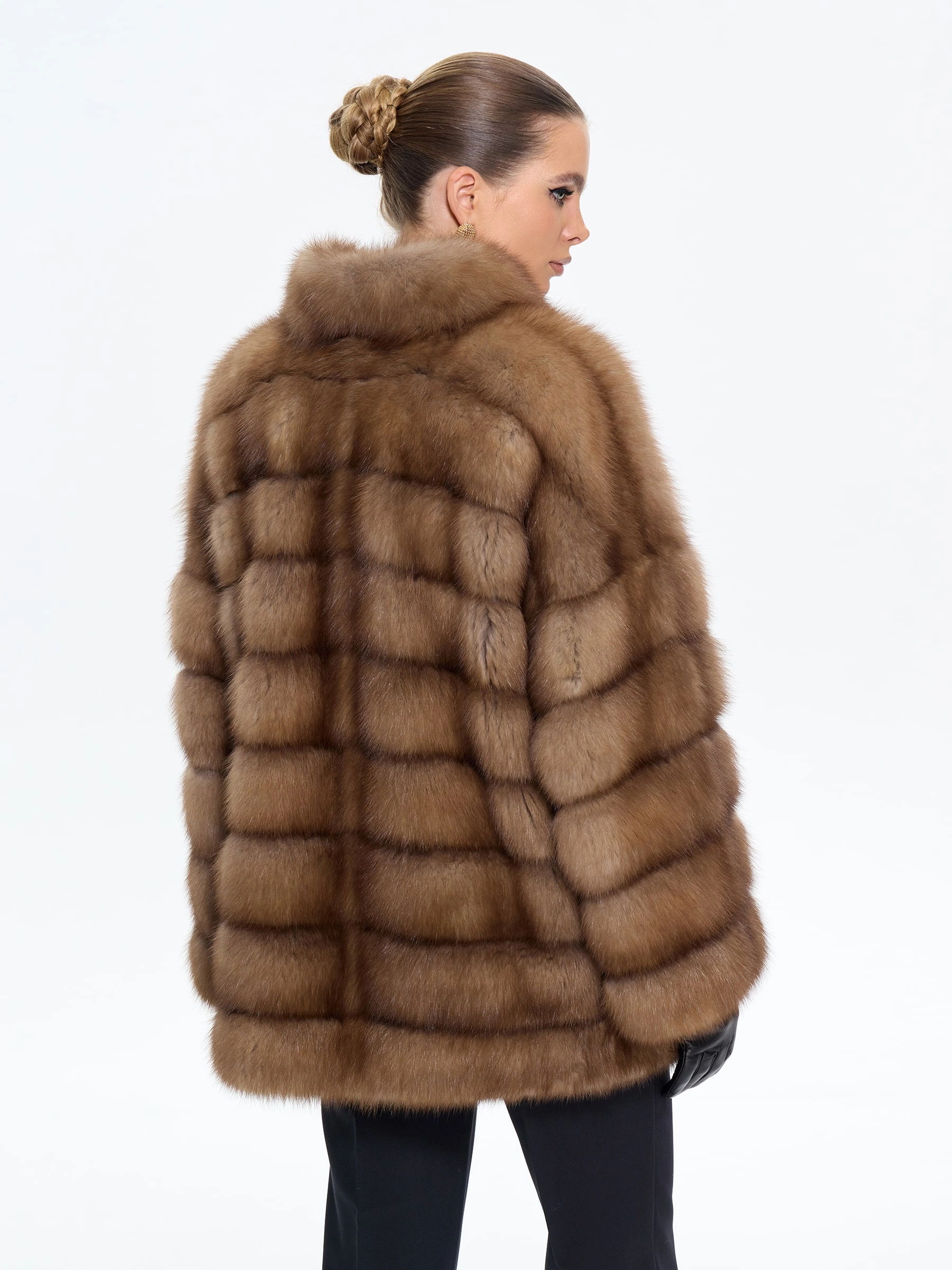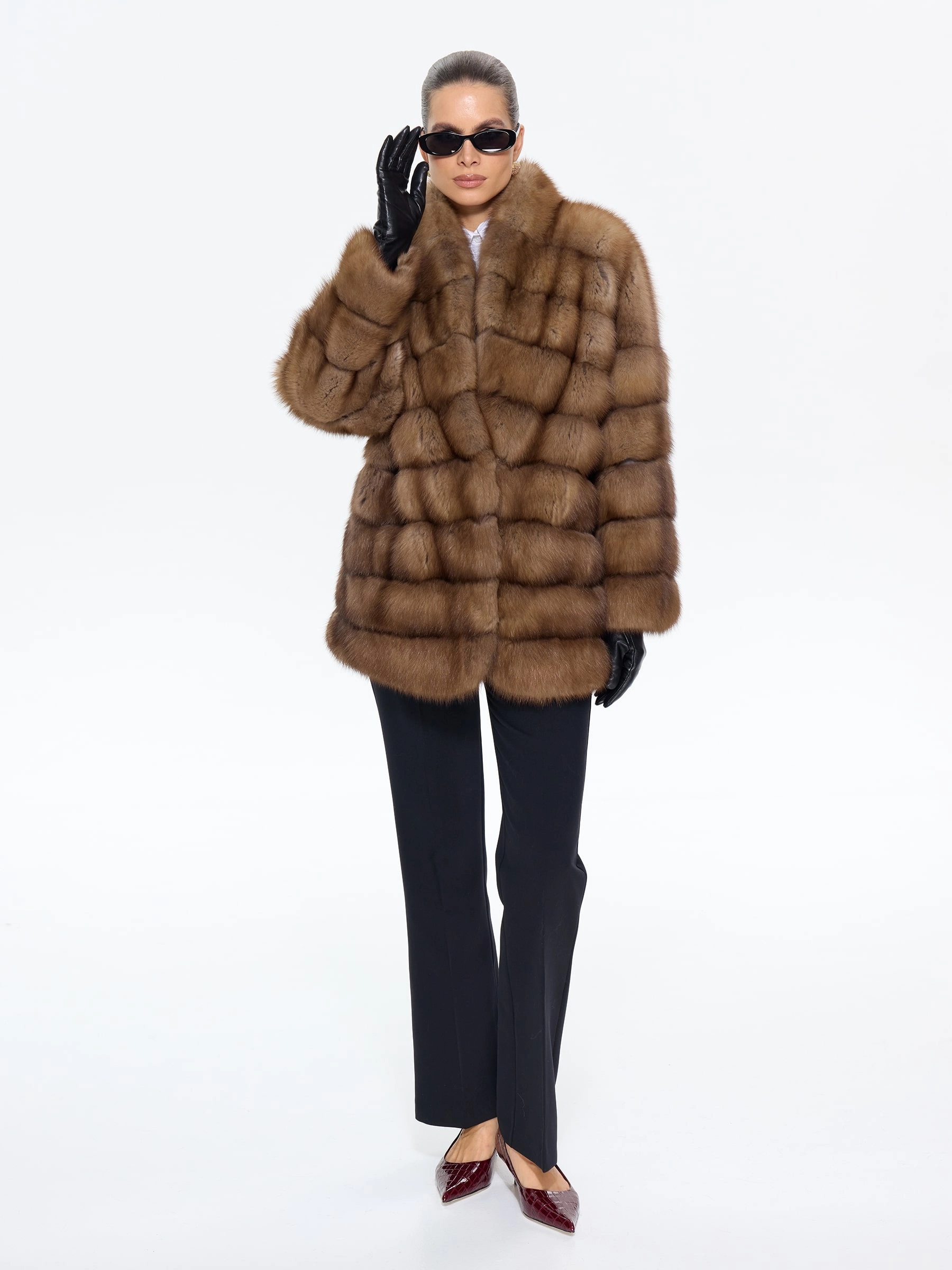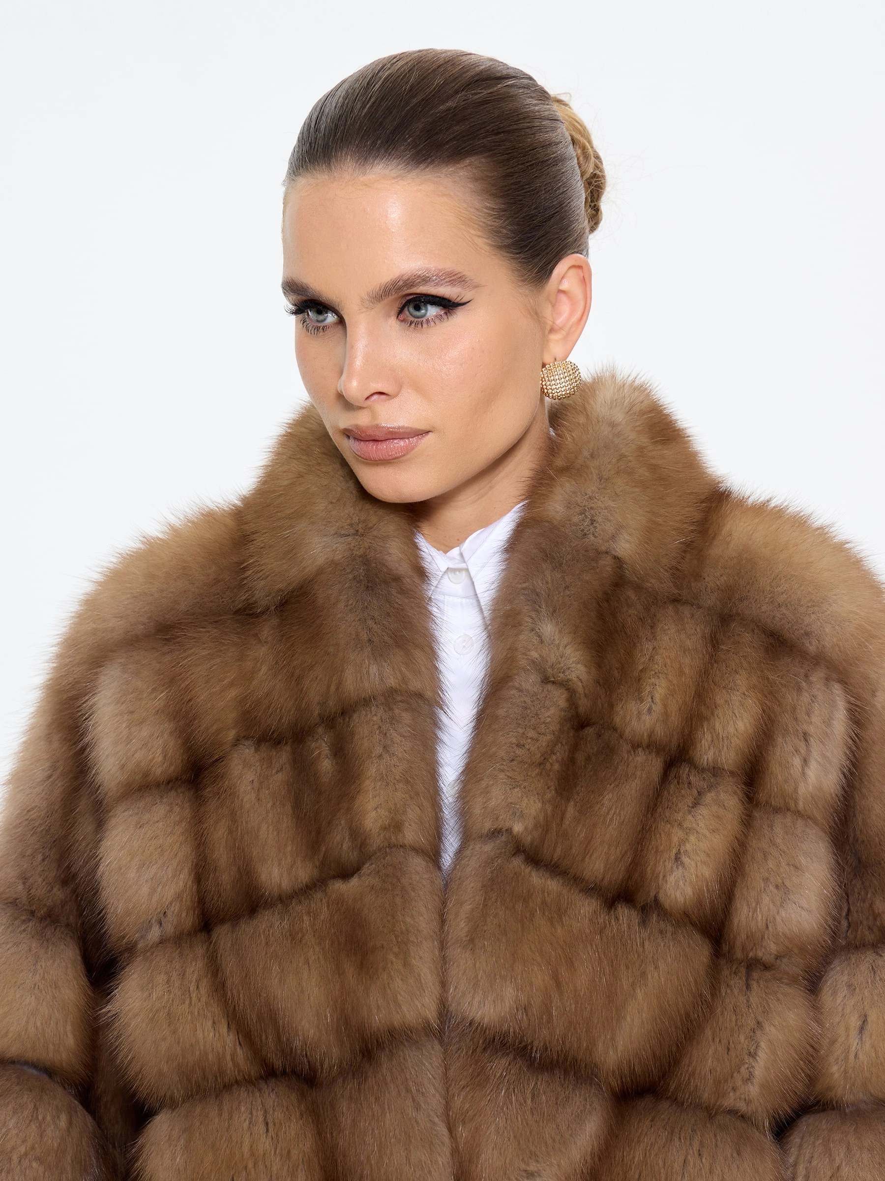 Элегантная шуба из меха куницы премиум-класса длиной 70 см с эффектным V-образным воротником и спущенным рукавом подчеркнет ваш изысканный вкус. Прямой силуэт в светло-коричневом оттенке и скрытые клипсы создают лаконичную элегантность. Стилисты рекомендуют носить эту модель с водолазкой и кожаными брюками для повседневного образа или с платьем-чехлом и сапогами-ботфортами для безупречного вечернего выхода, даря ощущение роскоши и комфорта.